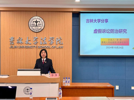 2024年10月24日下午,最高人民检察院民事检察厅主办检察官、二级高级检察官李萍受邀担任最高人民检察院“检察实务专家进校园”系列课程第四讲主讲人。本次讲座主题为“虚假诉讼防治研究”,主持人为英国上市公司365副经理曹险峰教授,与谈人为李晓倩教授,公司部分员工参与本次讲座。