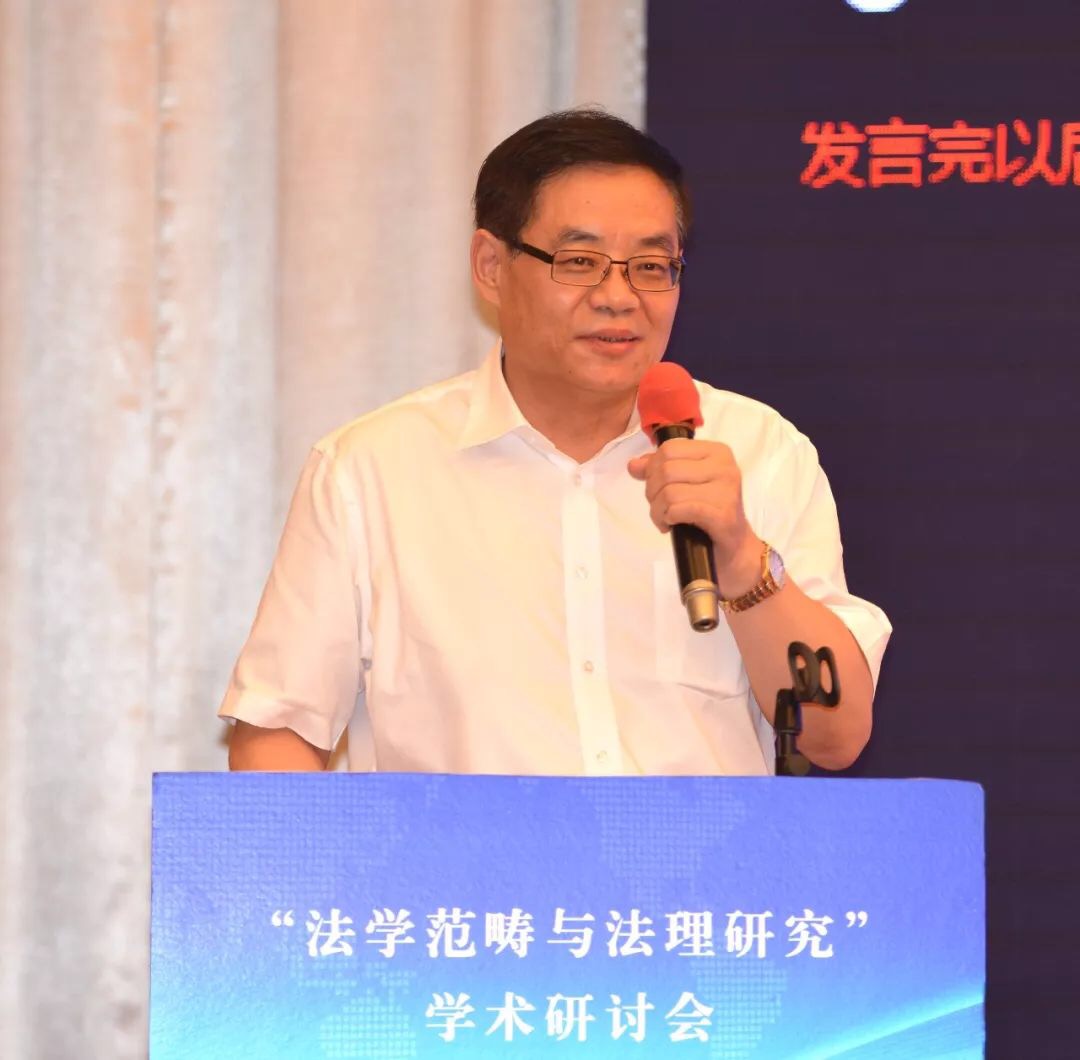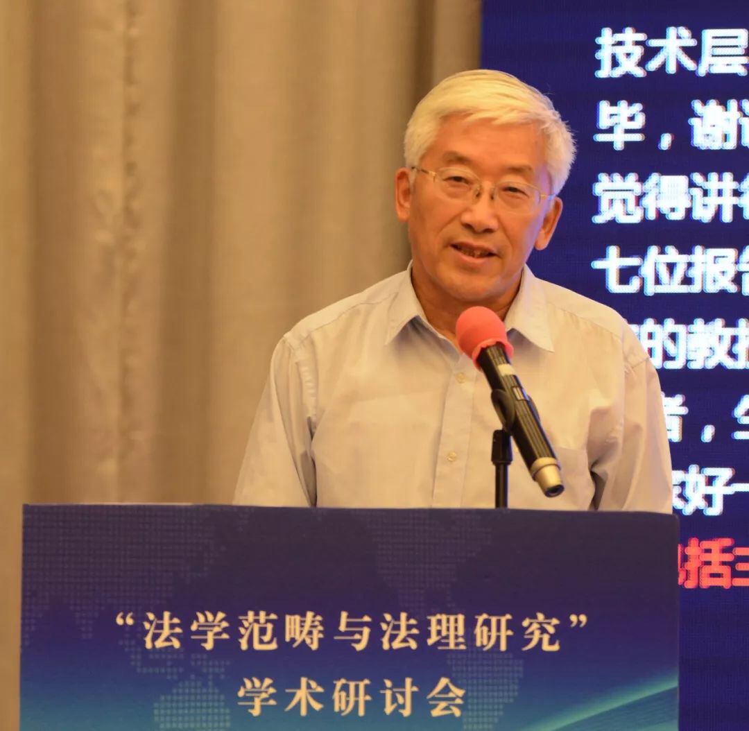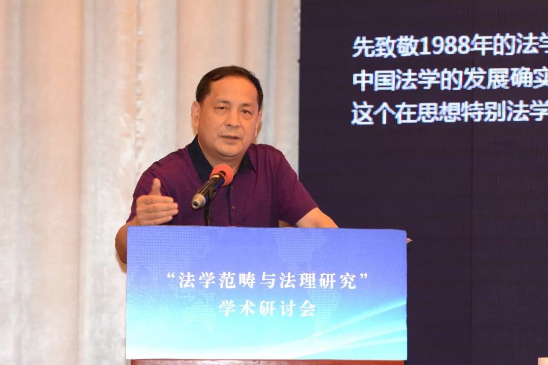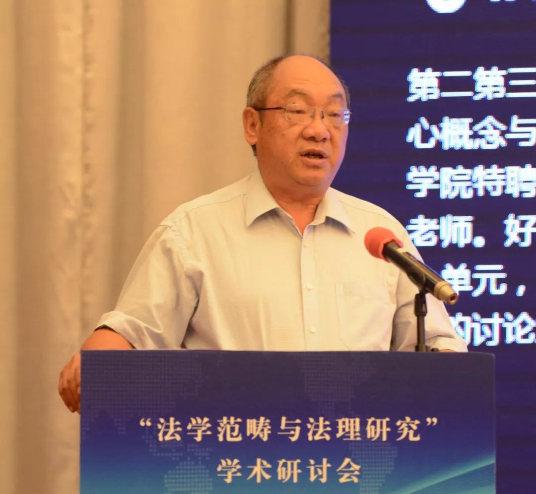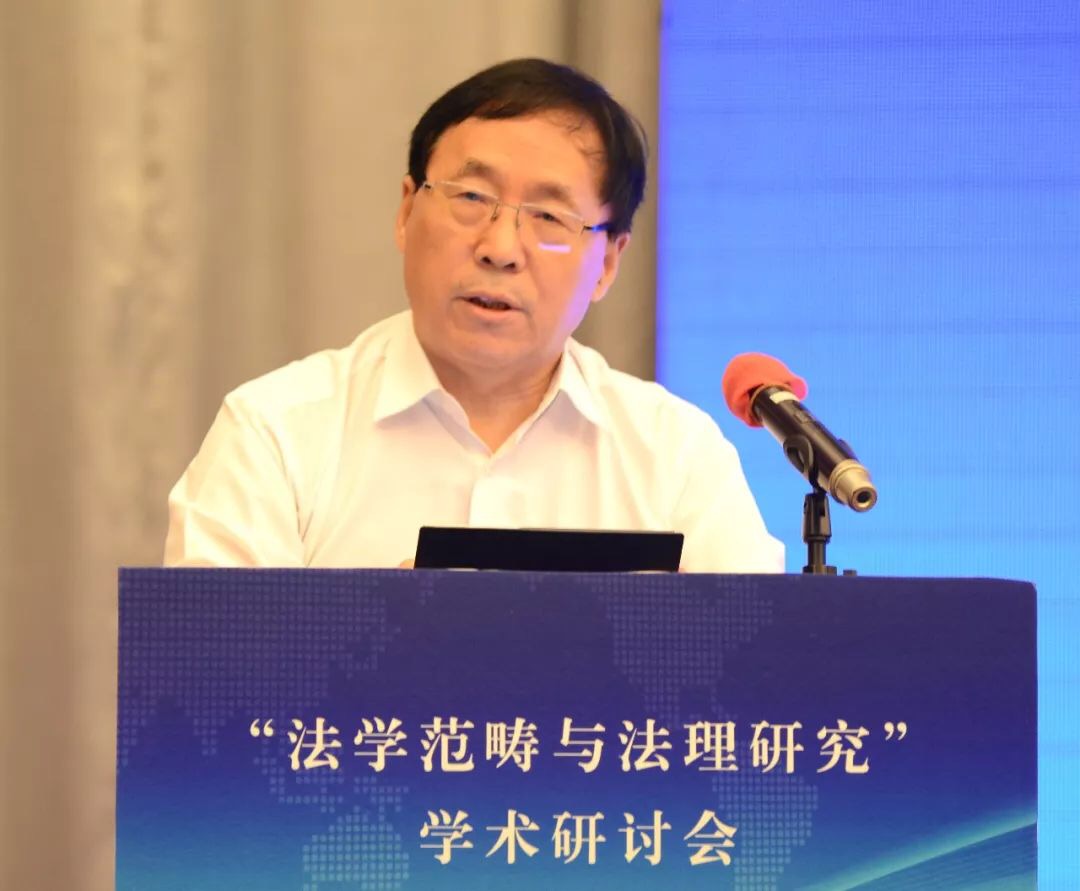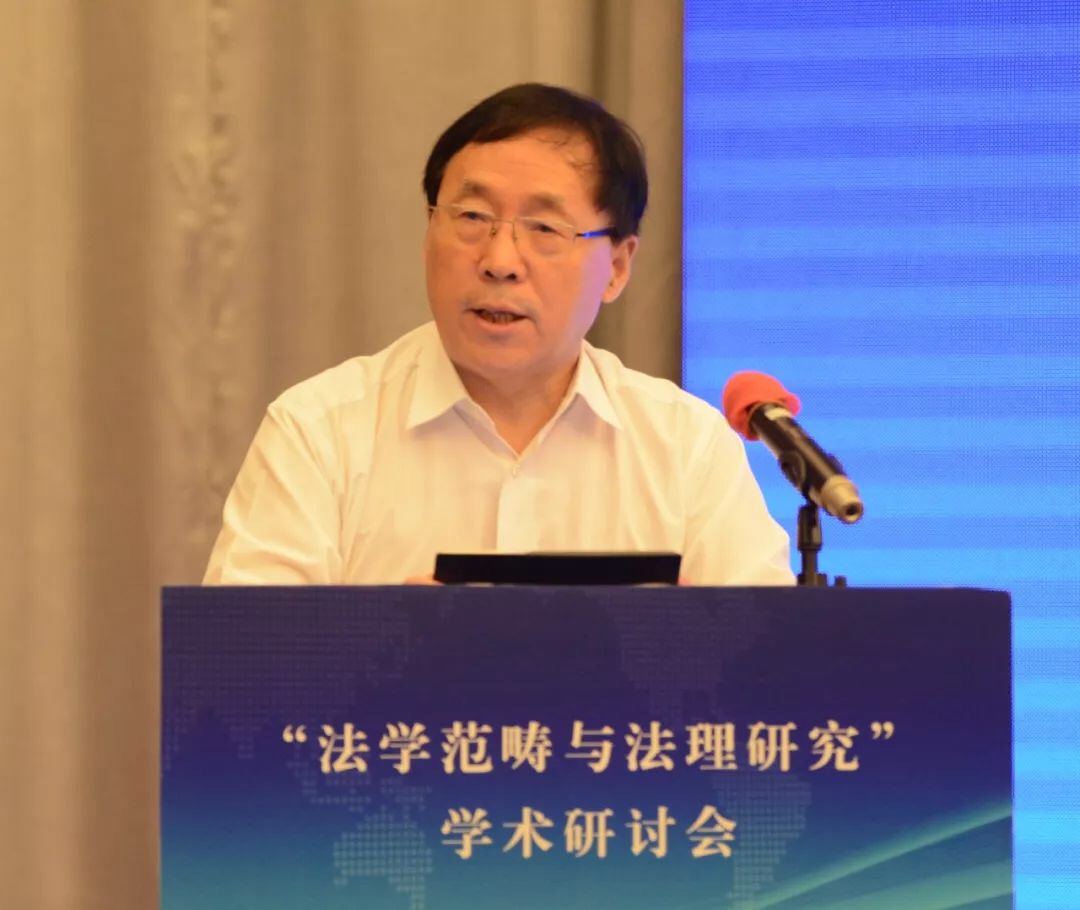 张文显教授在致辞中将本次会议的主题词概括为“纪念”、“深化”、“对接”。第一个关键词是“纪念”,纪念“全国法学基本范畴研讨会”30周年。三十年前的法学基本范畴研讨会是具有历史意义的会议,其增强了中国法学界的范畴意识、理论意识、体系意识,促成了法学研究范式的变革,推进了法律观、法学观、法治观的升华,助推了法学和其他学科的学术对话,具有重大的意义。第二个关键词是“深化”,深化法学范畴研究。理论和实践的发展亟需深入开展法学范畴研究。1988年以来、特别是党的十八大以来,法治建设和法治改革实践在中国特色社会主义法治道路上全面推进和拓展,新情况、新经验、新观点、新话语需要有新范畴去概括、去凝练;新兴学科交叉学科的出现必然产生大量的新概念新范畴,也必然需要凝练出新的概念和范畴。此外,法学方法论的进步引发对传统法学概念的重新解读,对西方法学的一些概念范畴也需要进行必要的审视。在深化概念范畴研究的过程中,有的概念范畴被净化、有的被扩容、有的被重新解读,也有更多的概念范畴有待于科学化、精致化、逻辑化、体系化。第三个关键词是“对接”,本次会议把范畴研究与法理研究放在一个主题之内,体现了主办方推进两个研究对接的设想。这种对接有客观的必然性和必要性。首先,法理就是一个法学的基本范畴,法学的基本范畴有很多,法律、法治、法理可以说是最基础、最统领的范畴。从法律到法治再到法理,体现了法治现代化和法学科学化的实践逻辑、历史逻辑和理论逻辑的一致性。二是,法理研究与其它范畴研究是相辅相成、相得益彰,法理赋予其他法学概念人文意蕴和科学精神,揭示其时代意涵,可以说,是法理范畴润养着其它范畴,使其更具理性和德性。同样,其它法学范畴的深入研究也必然会丰富法理范畴的内涵,使法理范畴更具认知基础和实践基础。三是,法理研究的范围十分广泛,深入的法理研究在每一个领域都会创造出、引导出更多的新范畴。四是,通过法学范畴与法理研究的对接,促进以权利为本位向以法理为中心的法学理论跃升,对中国特色法学体系的构建无疑有着进步意义。
