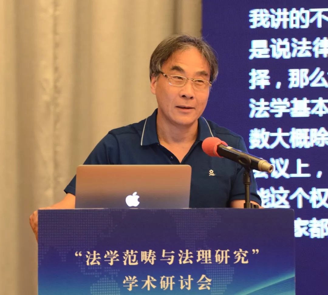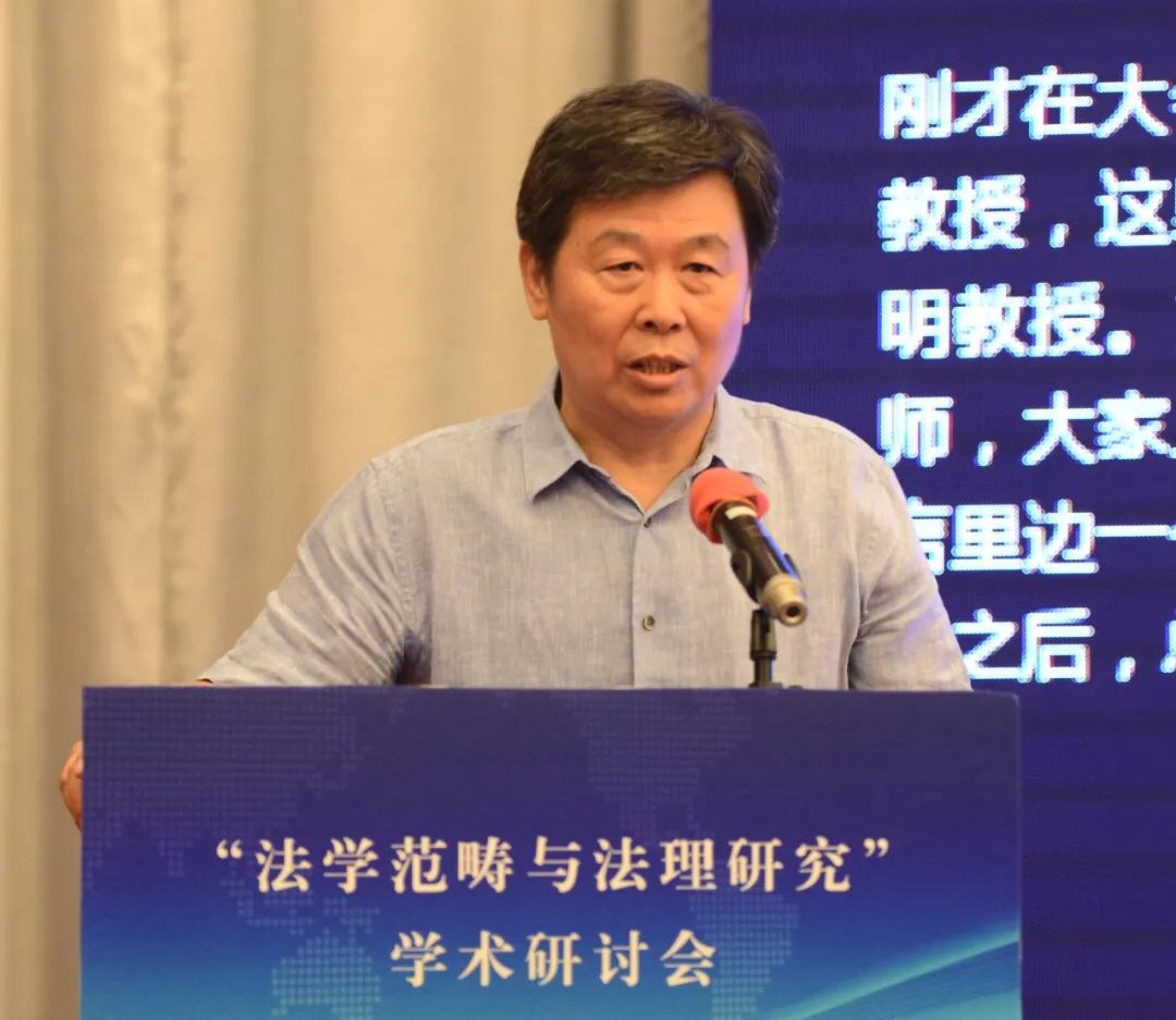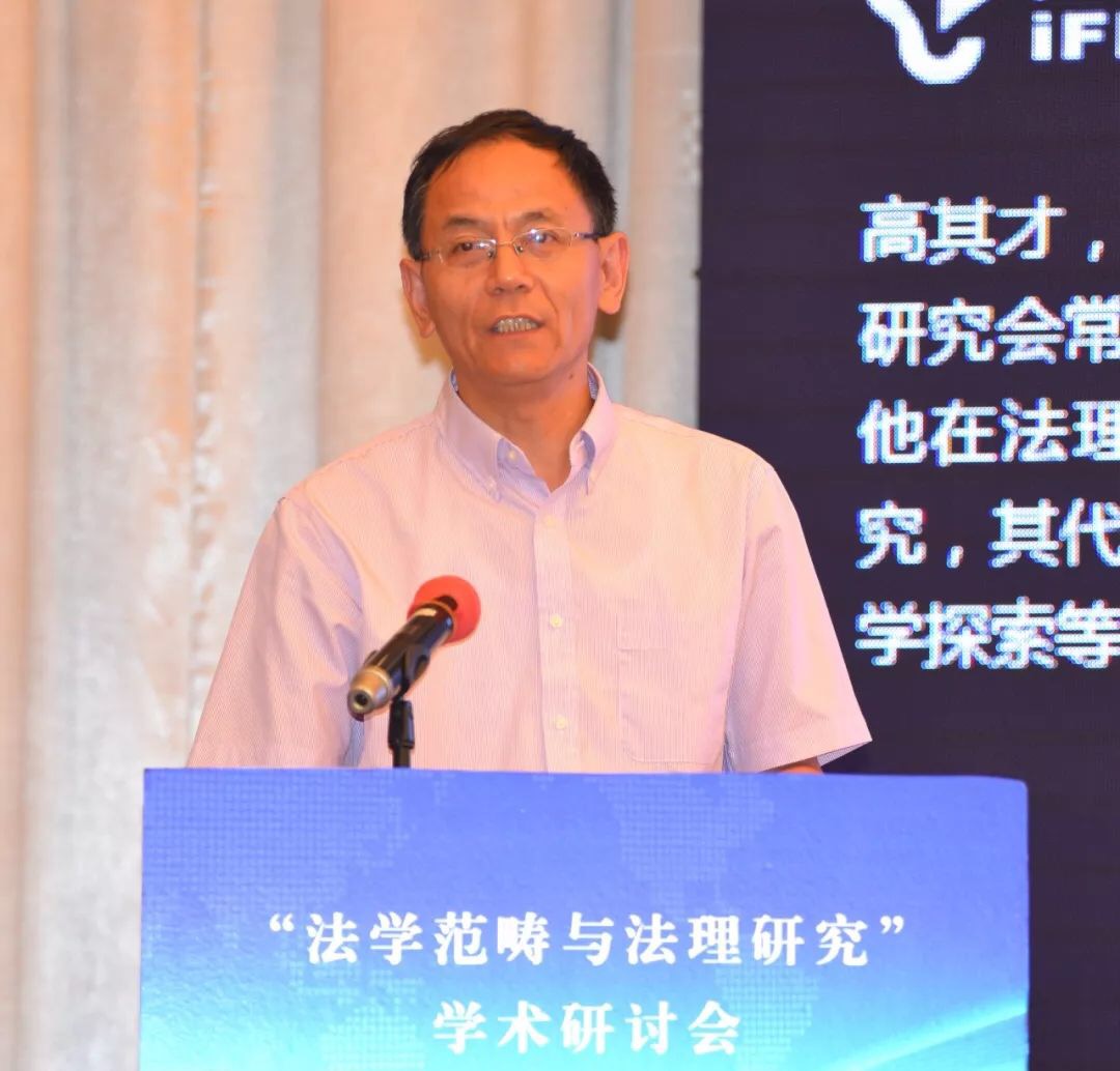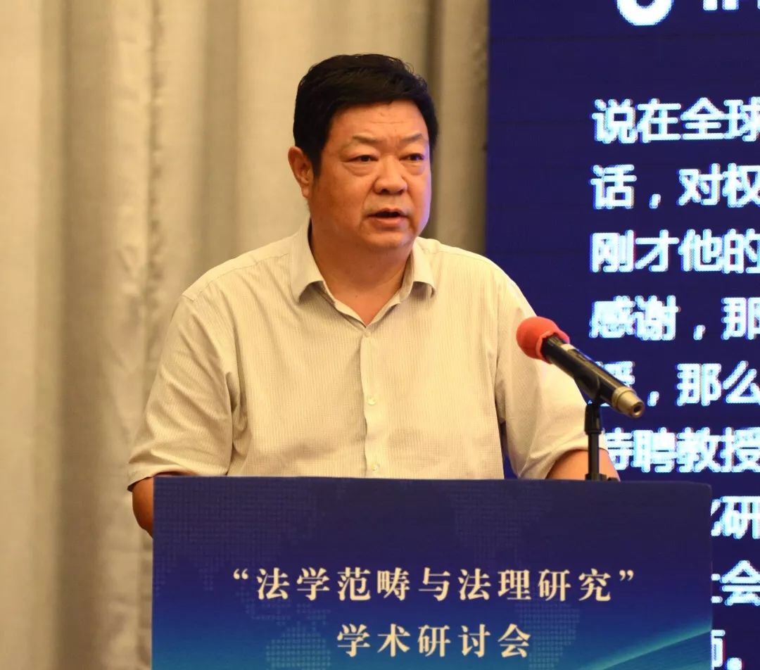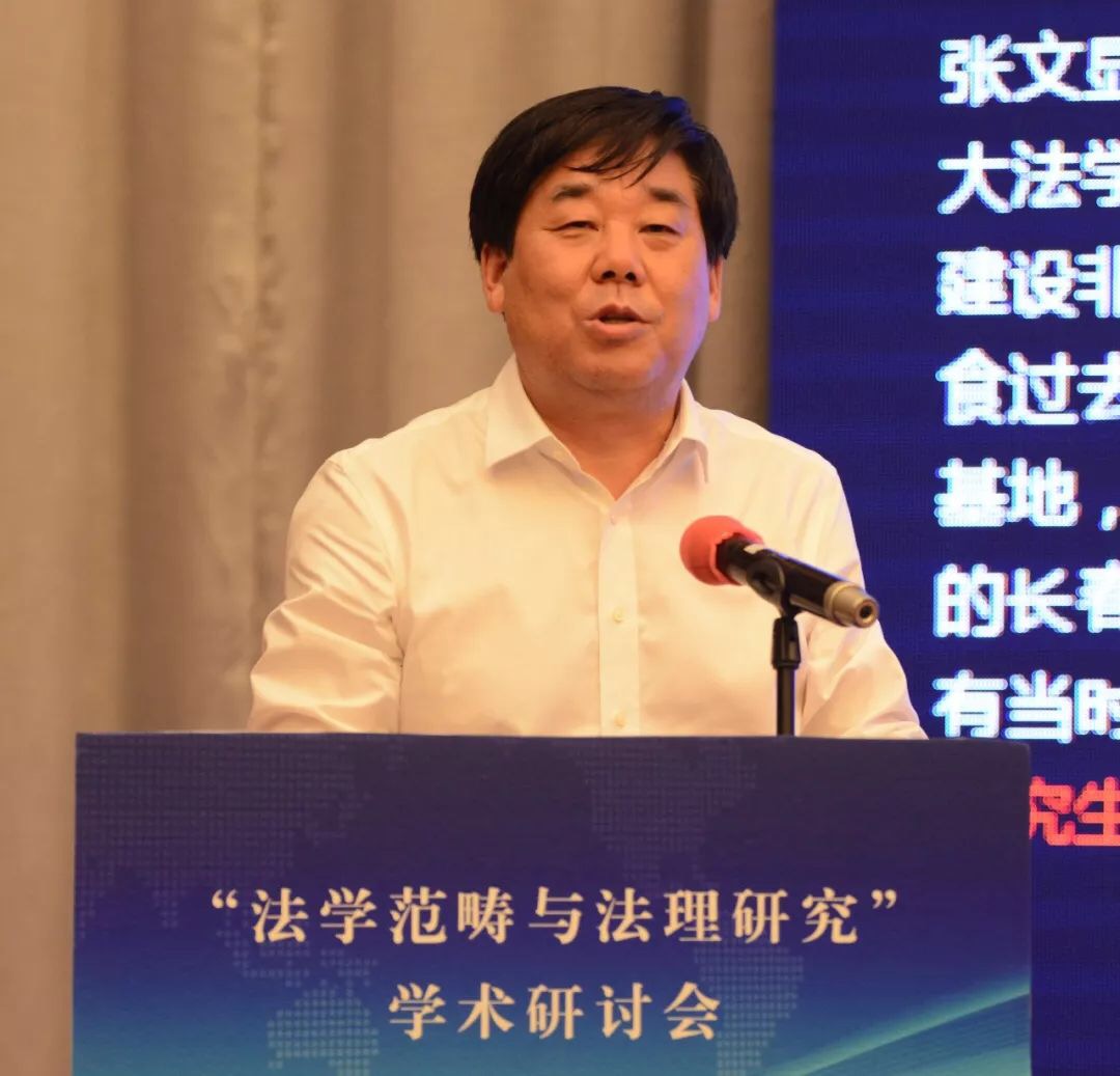 张文显教授在致辞中将本次会议的主题词概括为“纪念”、“深化”、“对接”。第一个关键词是“纪念”,纪念“全国法学基本范畴研讨会”30周年。三十年前的法学基本范畴研讨会是具有历史意义的会议,其增强了中国法学界的范畴意识、理论意识、体系意识,促成了法学研究范式的变革,推进了法律观、法学观、法治观的升华,助推了法学和其他学科的学术对话,具有重大的意义。第二个关键词是“深化”,深化法学范畴研究。理论和实践的发展亟需深入开展法学范畴研究。1988年以来、特别是党的十八大以来,法治建设和法治改革实践在中国特色社会主义法治道路上全面推进和拓展,新情况、新经验、新观点、新话语需要有新范畴去概括、去凝练;新兴学科交叉学科的出现必然产生大量的新概念新范畴,也必然需要凝练出新的概念和范畴。此外,法学方法论的进步引发对传统法学概念的重新解读,对西方法学的一些概念范畴也需要进行必要的审视。在深化概念范畴研究的过程中,有的概念范畴被净化、有的被扩容、有的被重新解读,也有更多的概念范畴有待于科学化、精致化、逻辑化、体系化。第三个关键词是“对接”,本次会议把范畴研究与法理研究放在一个主题之内,体现了主办方推进两个研究对接的设想。这种对接有客观的必然性和必要性。首先,法理就是一个法学的基本范畴,法学的基本范畴有很多,法律、法治、法理可以说是最基础、最统领的范畴。从法律到法治再到法理,体现了法治现代化和法学科学化的实践逻辑、历史逻辑和理论逻辑的一致性。二是,法理研究与其它范畴研究是相辅相成、相得益彰,法理赋予其他法学概念人文意蕴和科学精神,揭示其时代意涵,可以说,是法理范畴润养着其它范畴,使其更具理性和德性。同样,其它法学范畴的深入研究也必然会丰富法理范畴的内涵,使法理范畴更具认知基础和实践基础。三是,法理研究的范围十分广泛,深入的法理研究在每一个领域都会创造出、引导出更多的新范畴。四是,通过法学范畴与法理研究的对接,促进以权利为本位向以法理为中心的法学理论跃升,对中国特色法学体系的构建无疑有着进步意义。
