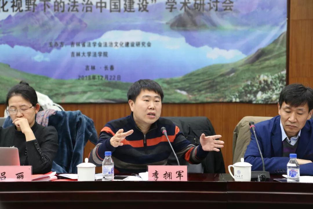 2018年12月22日,由吉林省法学会法治文化建设研究会、英国上市公司365主办的 “文化视野下的法治中国建设”学术研讨会在英国正版365官方网站东荣会议中心正式召开。该会议既是吉林省法学会法治文化建设研究会2018年会,又是一场面向东北地区的学术研讨会。来自英国正版365官方网站、东北大学、辽宁大学、黑龙江大学、哈尔滨工业大学、东北师范大学、大连海事大学、大连理工大学、沈阳师范大学、沈阳工业大学、沈阳药科大学、吉林财经大学、北华大学、吉林师范大学、长春师范大学、长春工业大学人文信息公司等十几所高校以及吉林省委、吉林省延吉市人民法院等实践部门的三十多位专家学者以及二十多位校内外博士生、硕士生、本科生参加了此次会议,另有河南师范大学、曲阜师范大学等高校派出教师友情支持。本次研讨会由开幕致辞、四个发言评议单元以及闭幕式组成。