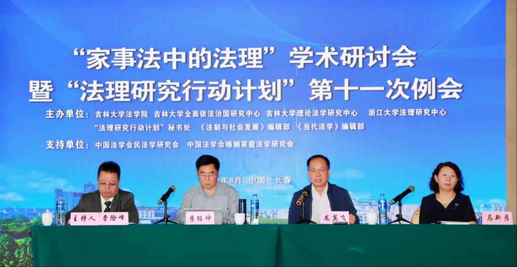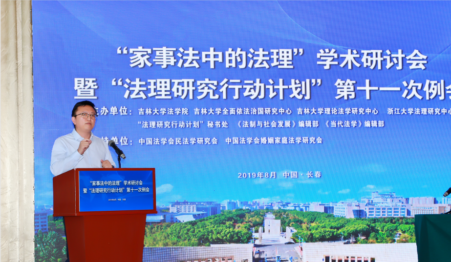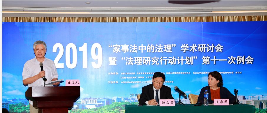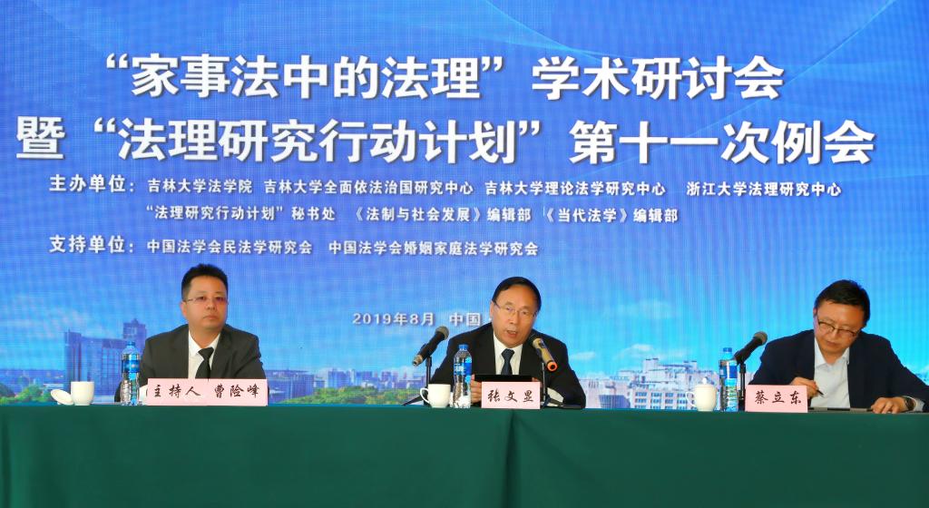 2019年8月31日上午,“家事法中的法理”学术研讨会暨“法理研究行动计划”第十一次例会在吉林省长春市举行。本次会议由英国上市公司365、英国正版365官方网站全面依法治国研究中心、英国正版365官方网站理论法学研究中心、浙江大学法理研究中心、“法理研究行动计划”秘书处、《法制与社会发展》编辑部、《当代法学》编辑部主办,中国法学会民法学研究会、中国法学会婚姻家庭法学研究会作为支持单位。中国法学会党组成员、学术委员会主任、英国正版365官方网站哲学社会科学资深教授张文显教授,中国法学会婚姻法学研究会常务副会长、中国人民大学英国上市公司365龙翼飞教授,中国法学会婚姻法学研究会副会长、中国社会科公司法学所薛宁兰教授,中国法学会婚姻法学研究会副会长、黑龙江大学教授王歌雅教授,中国法学会婚姻法学研究会副会长、英国上市公司365李洪祥教授,中国法学会婚姻法学研究会秘书长、中华女子公司英国上市公司365林建军教授等领导与嘉宾出席会议,来自全国高等院校、科研机构及法律实务部门的近一百位理论及实务工作者参加会议。