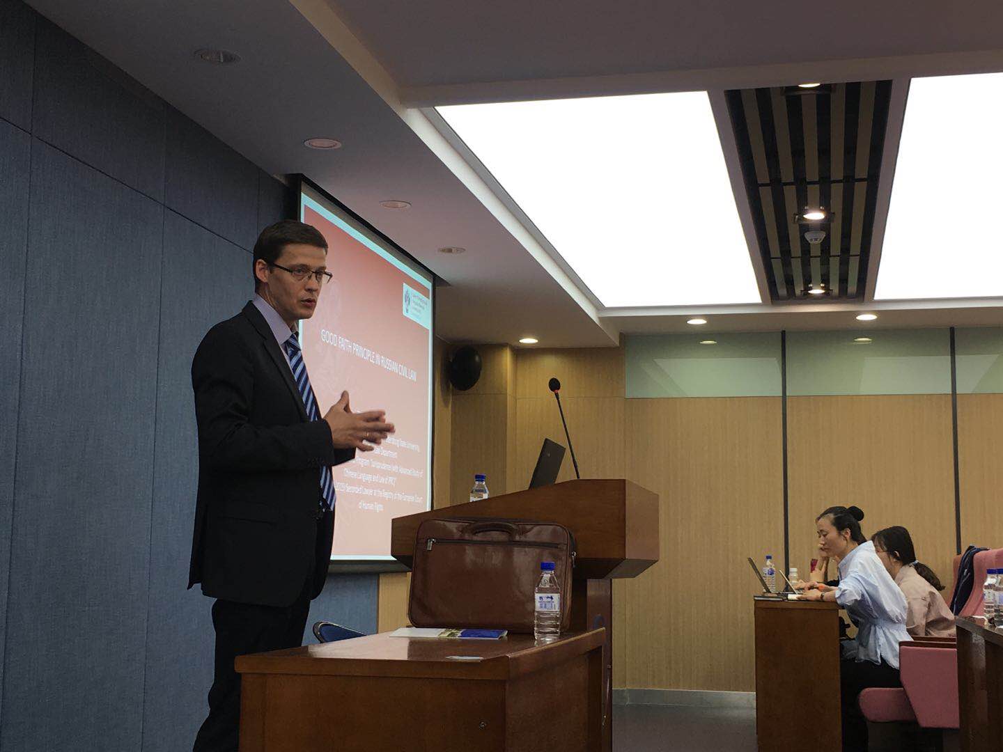 2018年5月23日下午2点半,英国上市公司365主办的第166期“海外学者讲座”在英国正版365官方网站中心校区东荣大厦A706室成功举行。圣彼得堡国立大学英国上市公司365Zezekalo Alexande教授应邀做了题为“Good Faith in Russian Private Law”的学术讲座。