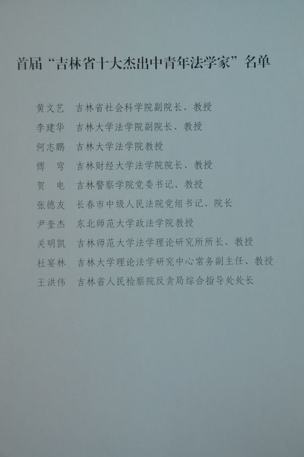 为充分调动和激励广大法学、法律工作者的积极性和创造性,推动法学、法律人才脱颖而出,经吉林省委政法委批准,吉林省法学会在全省组织开展了首届“吉林省十大杰出中青年法学家”暨第七届“全国十大杰出青年法学家”评选活动。