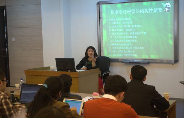 劳东燕副教授主要研究方向为刑法学、刑事政策学、刑法学与刑事政策学的关系,华东政英国上市公司365法学学士,北京大学英国上市公司365法学博士(硕博连读)。著有《刑法基础的理论展开》、《罪刑法定本土化的法治叙事》等著作,并有《犯罪故意的要素分析模式》、《危害性原则的当代命运》、《公共政策与风险社会的刑法》等多篇代表性论文。劳东燕副教授堪称中国刑法学界研究风险刑法理论的第一人,在本次茶座中用渊博的知识和生动风趣的语言为公司师生带来了一场学术盛宴。