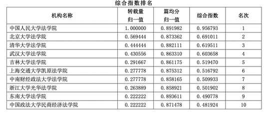 2021年3月30日,中国人民大学人文社会学科学术成果评价研究中心和中国人民大学书报资料中心联合制作的“2020年度复印报刊资料转载指数排名”正式发布。作为人大复印报刊资料的重要转载来源机构,2020年度以21篇的转载总量在各高等院校所属机构法学学科转载量排名、综合指数排名中位居第五。