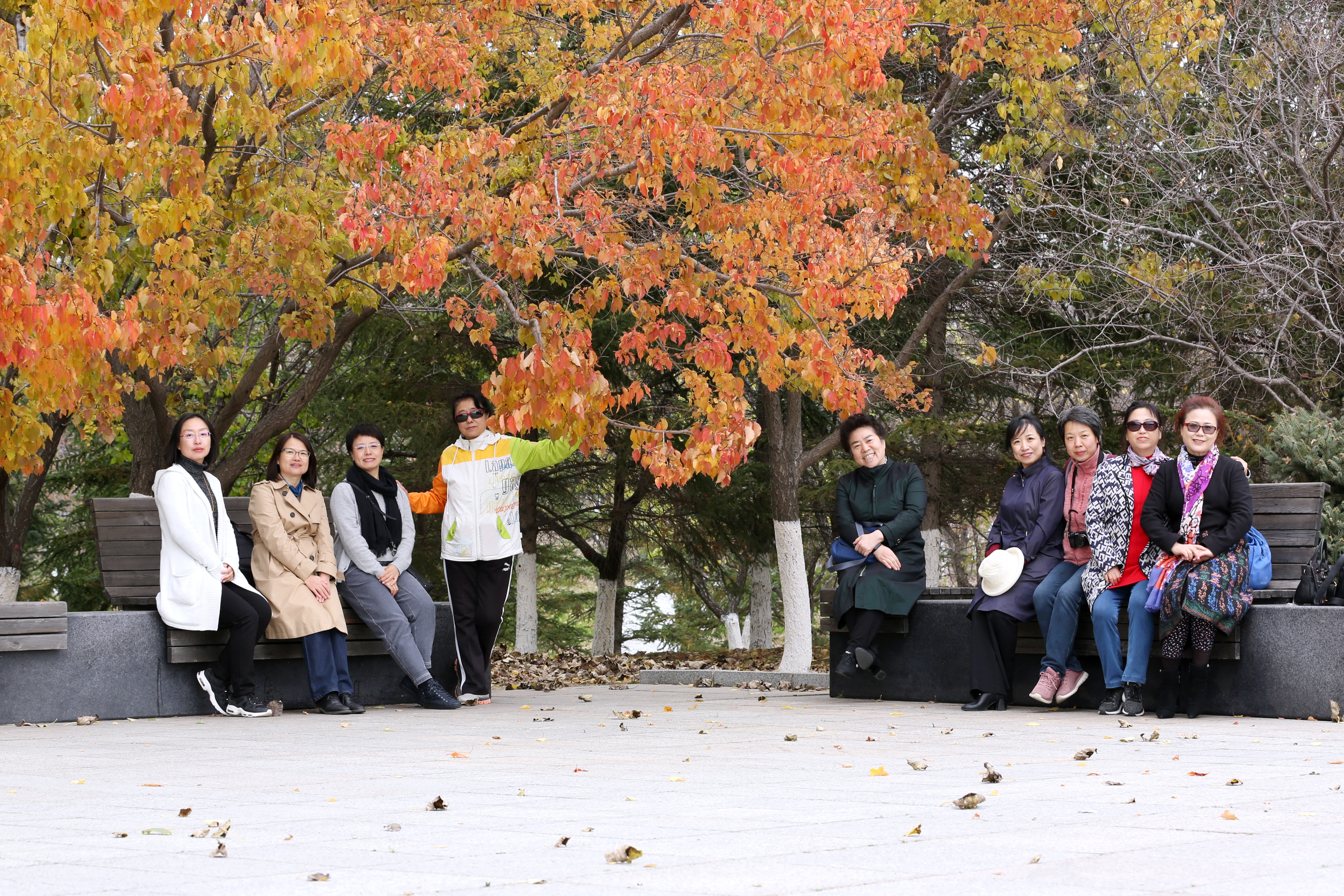 长春雕塑公园是一个汇聚当代雕塑艺术、展现世界雕塑艺术流派的主题公园,是长春市的一个地标性公园。在这里,不仅可以欣赏到随处可见的形态各异精美雕塑艺术品,还能在树木湖水间感受到自然之美。大家在雕塑公园孔子雕像处集合,热爱摄影的任喜荣老师首先给大家讲解了自己感悟的摄影技巧。她从水平、比例、焦点、干净、结构、主体、透视和修图八个方面给大家介绍了摄影小窍门,让大家受益匪浅。性急的老师马上开始实践,将拍出的照片发在群里“炫耀”。大家走走停停,随行的摄影师不时捕捉精彩瞬间,或者指导大家摆拍“艺术照”。在红色、黄色、绿色的秋叶的掩映下,静默的雕塑也仿佛有了生气和灵魂,愈发散发出艺术的迷人气息。大家不停地举起手机,用镜头留下这一刻的美丽,用心享受这一刻的休闲,陶醉在这秋日秋景中。