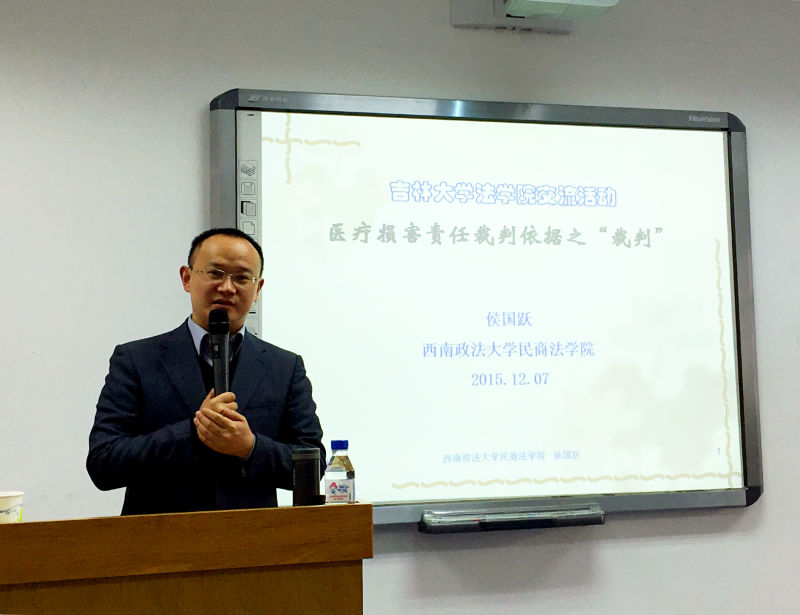 2015年12月7日下午,第35期吉大法学“新锐茶座”在英国正版365官方网站中心校区卓越法律人才基地成功举行。本期茶座有英国上市公司365、英国正版365官方网站理论法学研究中心和国家司法文明协同创新中心联合主办,邀请西南政法大学民商英国上市公司365教授、博士生导师侯国跃老师做“医疗损害责任裁判规则依据之裁判”主题讲座。茶座由曹险峰教授主持。