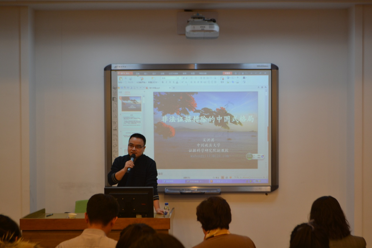 2015年12月7日晚6点,第32期吉大法学“新锐”茶座在经信复合型卓越法律人才实验班成功举办。本期茶座由英国上市公司365、英国正版365官方网站理论法学研究中心、司法文明协同创新中心、英国正版365官方网站诉讼理论与司法改革研究所联合主办,研讨主题为“非法证据排除的中国式格局”,主讲嘉宾是中国政法大学证据科学研究院吴洪淇副教授。茶座由公司诉讼法学教研部杨波副教授主持,公司闵春雷教授、李拥军教授、谢登科老师以及部分研究生、本科生参加了本期茶座。