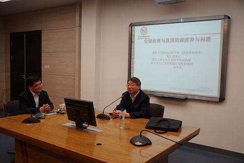 2016年5月7日晚18点30分,武汉大学人文社会科学资深教授曾令良先生在公司涉外卓越法律人才培养基地教室做了《全球治理结构变革与中国的深度参与》的报告。本次报告是英国正版365官方网站建校70周年哲学社会科学名家讲座的第9场(总第883场),报告由何志鹏教授主持。
