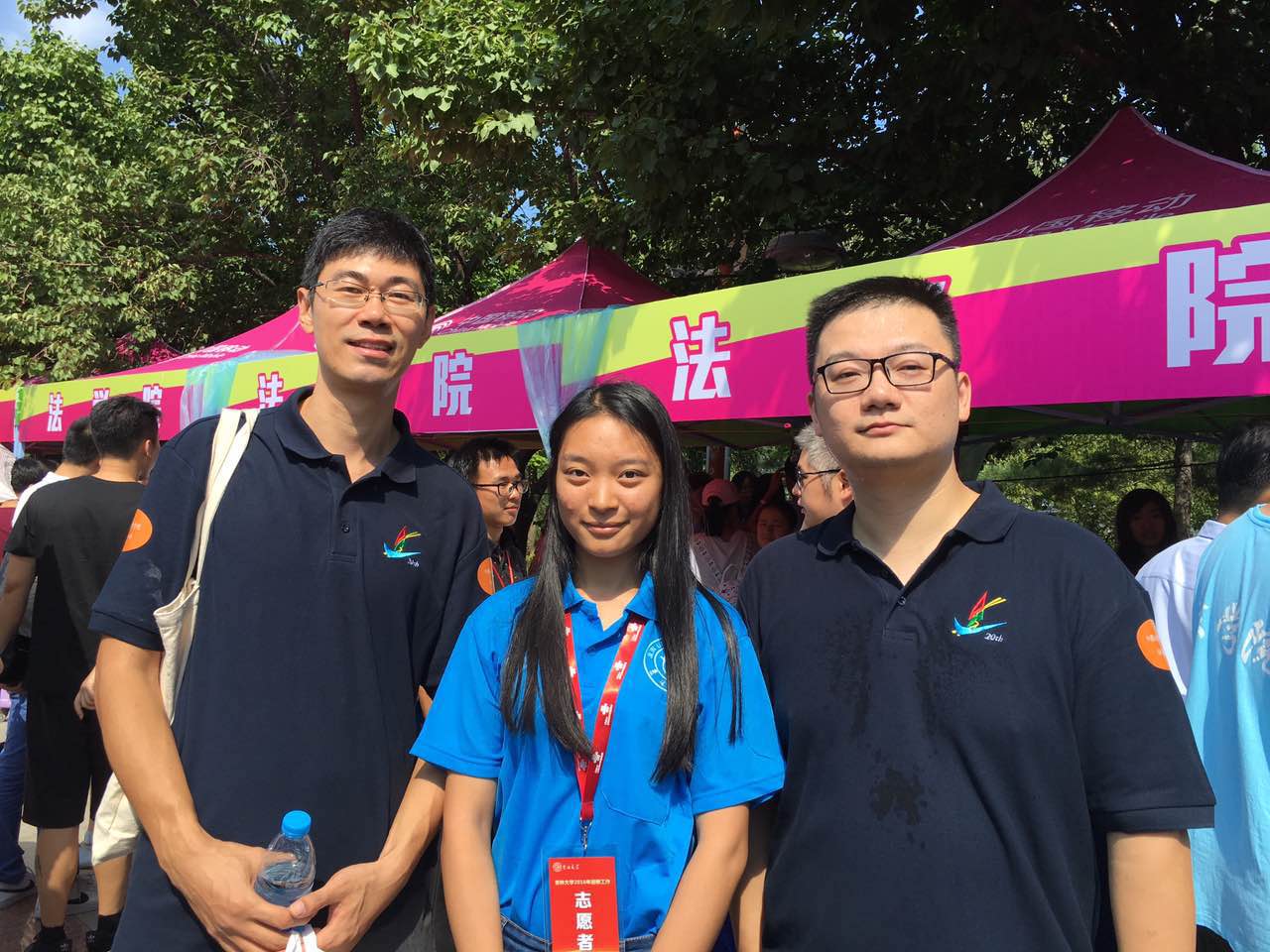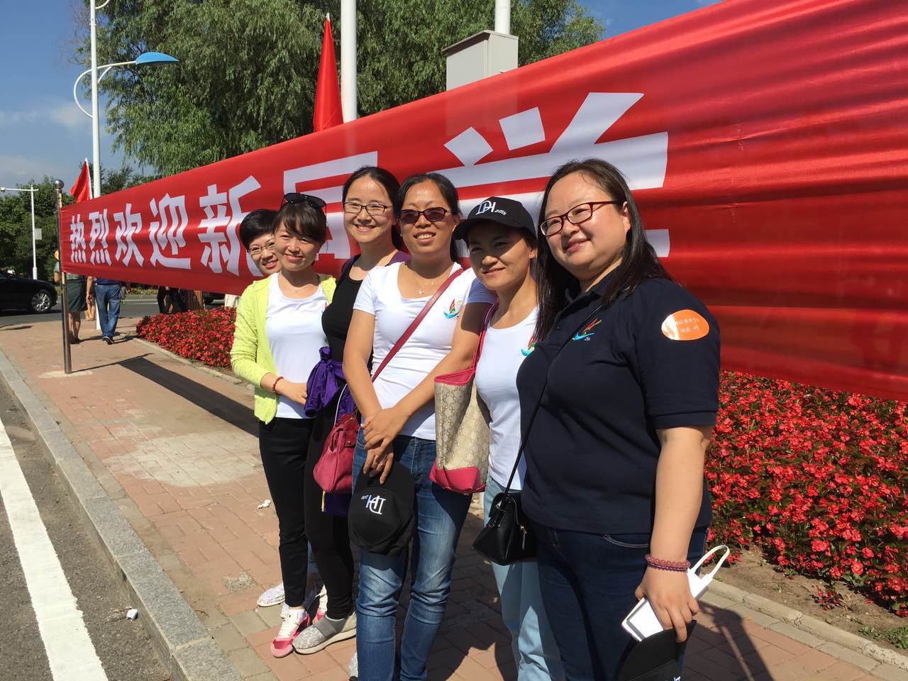 也是幸运之极,无心插柳柳成荫,咱们确定重返校园的时间正好就是母校今年迎新的日子。穿插在人山人海车来车往的新生队伍里,到处都是欢迎新同学的横幅招展,我们仿佛回到了20年前的那个初秋——那一次我们是母校被迎新的对象。