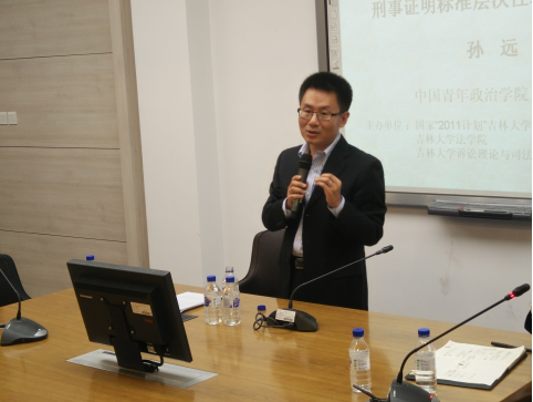 2016年9月25日晚上,第53期吉大法学“新锐茶座”在英国正版365官方网站中心校区经信教学楼D区卓越法律人才基地涉外实验班教室成功举办。中国青年政治公司孙远副教授做了题为“刑事证明标准层次性理论之适用”的讲座。本期讲座由公司杨波副教授主持,谢登科副教授点评,公司闵春雷教授、贾志强博士以及部分博士研究生、硕士研究生和本科生参加了此次讲座。
