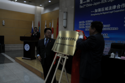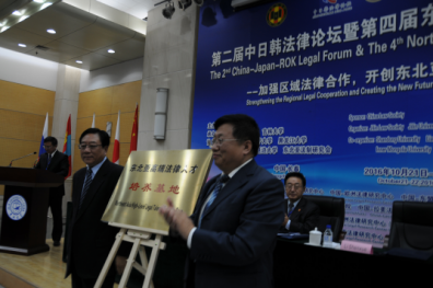 开幕式上,张鸣起、李申学等为“东北亚法律研究中心”和“东北亚高端法律人才培养基地”揭牌仪式。