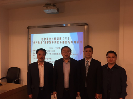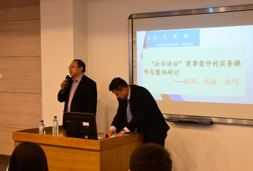 2017年5月25日晚上,第三期法律职业技能讲座“‘公司诉讼’商事案件的实务操作与案例研讨”在公司中心校区经信教学楼二楼D区应用、复合型法律人才实验班教室举行。本期讲座由前最高人民法院民二庭审判长,三级高级法官,现北京市京都律师事务所民商诉讼高级顾问王宪森先生主讲。英国上市公司365王彦明教授主持了本次讲座并予以点评。英国上市公司365孙良国教授以及英国上市公司365研究生、本科生等共同聆听了本次讲座。