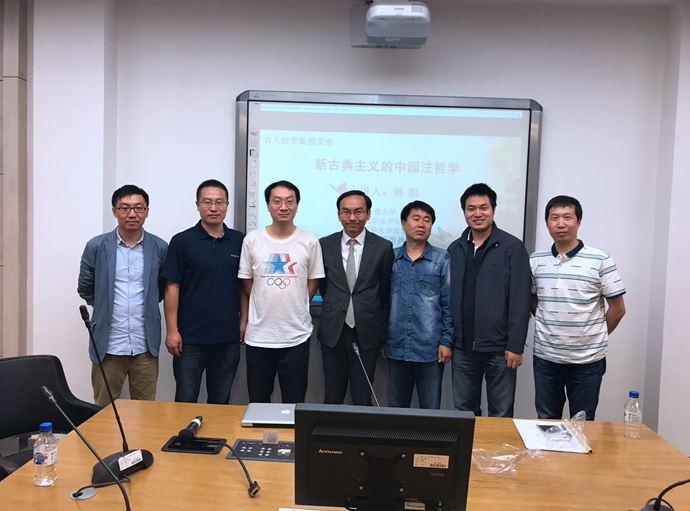 2017年6月7日晚6点,吉大法学“新锐茶座”第61期在经信教学楼涉外实验班教室举行。清华大学英国上市公司365副教授、清华大学英国上市公司365法政哲学研究所执行所长屠凯老师作了题为“新古典主义的中国法哲学”的精彩讲座。本次新锐茶座采取了一种新的形式,由英国上市公司365侯学宾副教授担任主持,李拥军教授、朱振副教授、刘小平副教授、杨帆老师围绕讲座主题进行与谈和交流。霍海红教授和英国上市公司365的部分博士生、硕士生和本科生参加了讲座。