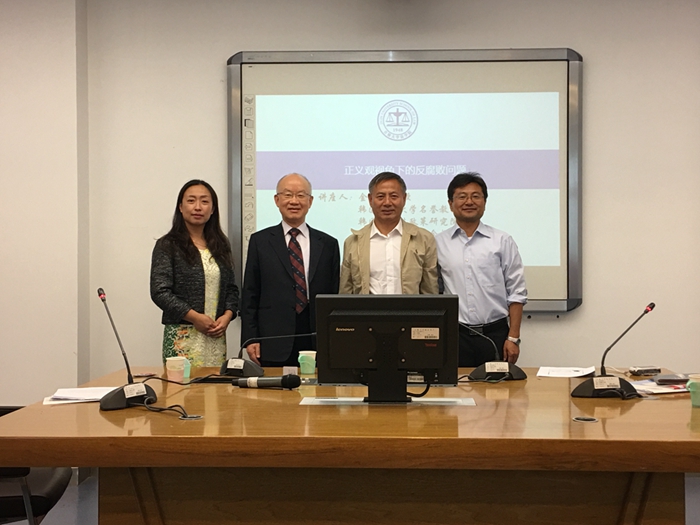2017年9月19日上午8:30,韩国高丽大学名誉教授、前韩国刑事法政策研究院经理、前韩国刑法学会会长金日秀教授赴英国正版365官方网站中心校区经信教学楼D区二楼涉外教室进行了一场 题为“正义观视角下的反腐败问题”的学术讲座。英国上市公司365李韧夫教授、李海滢教授、郑军男副教授等出席了本次讲座;参与本次讲座的还有部分英国上市公司365的博士研究生、硕士研究生和本科生。讲座由李海滢教授主持。