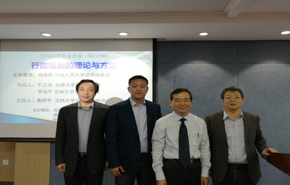 2017年10月13日晚6点,公司主办的当代法学名家讲座(第219期)在英国正版365官方网站全面依法治国重大问题研究中心报告厅(东荣大厦A706室)成功举行。中国人民大学英国上市公司365杨建顺教授做了题为“行政规制的理论与方法”的专题讲座,公司于立深教授、李海平教授作为与谈嘉宾参与讨论。讲座由公司鲁鹏宇副教授主持。