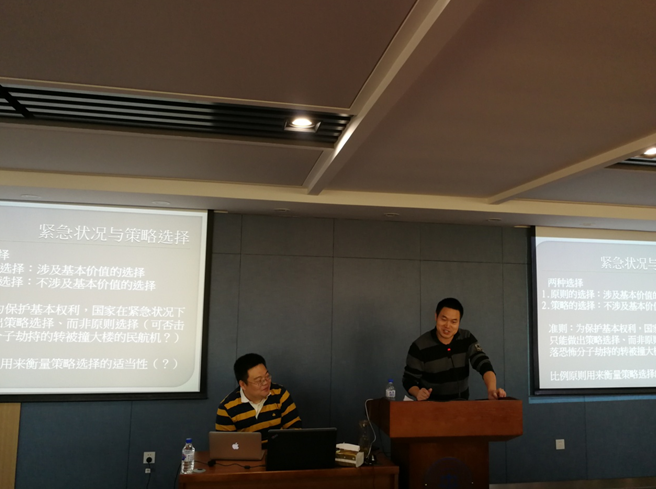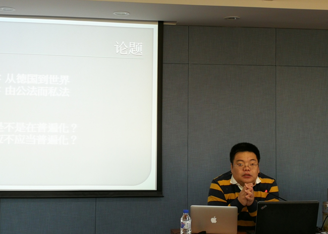 陈景辉教授从比例原则的地域普遍化和领域普遍化的现象出发,引出了论题:“比例原则应当被普遍化吗?” 随后,陈景辉教授条分缕析,通过说明“普遍化”的基本内涵与条件,引发对于比例原则空洞性的思考,将比例原则与某种关于基本权利的特定观念联系起来。最后陈景辉教授讨论了“基本权利的性质”这一个根本问题,挑战了当前主流的“基本权利是原则”的观念,从而引出了他关于比例原则之有限性的看法。陈景辉教授犀利的观点、清晰的思维、缜密的逻辑带领与会师生进行了一场“头脑风暴”式的学术探讨,他生动风趣的语言给大家留下了深刻的印象。