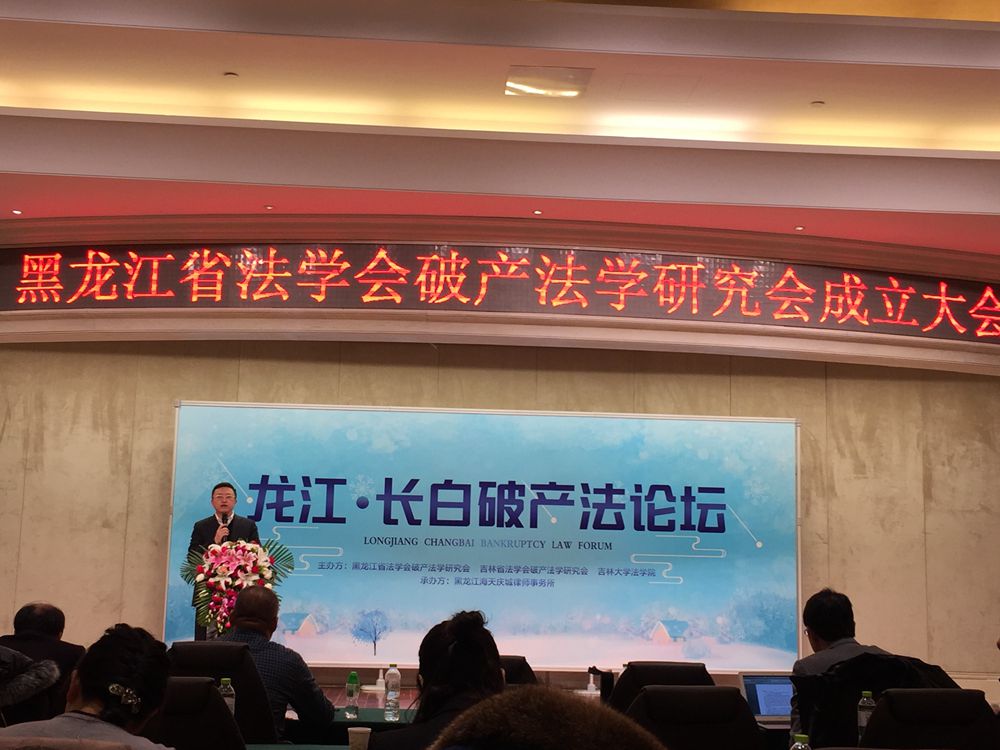 2018年1月27日,首届“龙江·长白破产法论坛”暨黑龙江省法学会破产法学研究会成立大会在哈尔滨举行,本次论坛由黑龙江省法学会破产法学研究会、吉林省法学会破产法学研究会、英国上市公司365主办,黑龙江海天庆城律师事务所承办。英国上市公司365经理、博士生导师蔡立东教授,吉林省法学会破产法学研究会会长、英国上市公司365博士生导师齐明教授,黑龙江省法学会破产法学研究会会长、黑龙江海天庆城律师事务所主任曹丽在开幕式致辞,并预祝龙江·长白破产法论坛圆满成功。来自黑龙江、吉林、辽宁、内蒙三省一区的法官、专家学者、优秀破产律师和企业代表共180余人参加论坛。