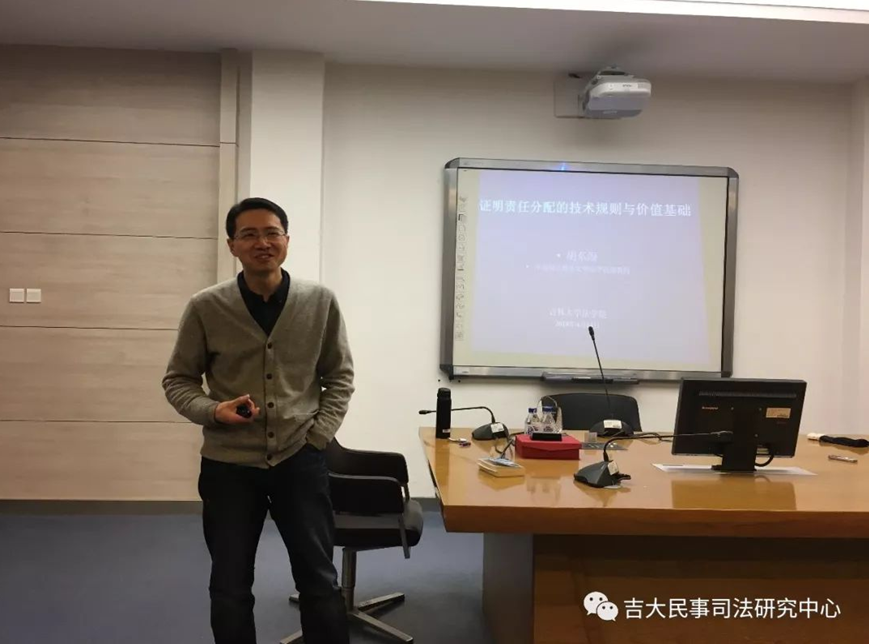 2018年4月14日18时30分,由英国上市公司365民事司法研究中心主办的第15期吉大民诉法学青年工作坊,在英国正版365官方网站中心校区经信教学楼卓越法律人才基地涉外班教室成功举行。中南财经政法大学英国上市公司365胡东海副教授应邀做题为“证明责任分配的技术规则与价值基础”的学术讲座。