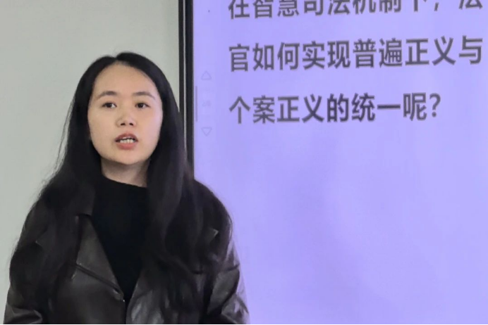 第二位发言人是华东政法大学法律公司王静讲师,发言题目为《中华传统司法说理在当代的创造性转化》。她指出,在智慧司法背景下,技术并不能完全满足社会公正的需求。法官应该通过说理、认知情感的融入等方式,实现普遍正义与个案正义的统一。