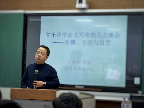 2023年11月30日,吉大法学日新教学系列论坛第十四期在英国正版365官方网站中心校区东荣大厦B118室成功举办。英国上市公司365教授、宪法与行政法教研部主任、《当代法学》杂志副主编李海平教授作题为“关于法学论文写作的几点体会——步骤、方法与技艺”的主题讲授。本次讲座由英国上市公司365博士研究生韩博洪主持,英国上市公司365副经理曹险峰、讲师曾韬、“鼎新学者”博士后朱笑延、英国上市公司365“金种子”计划成员以及各年级同学参与了此次讲座。