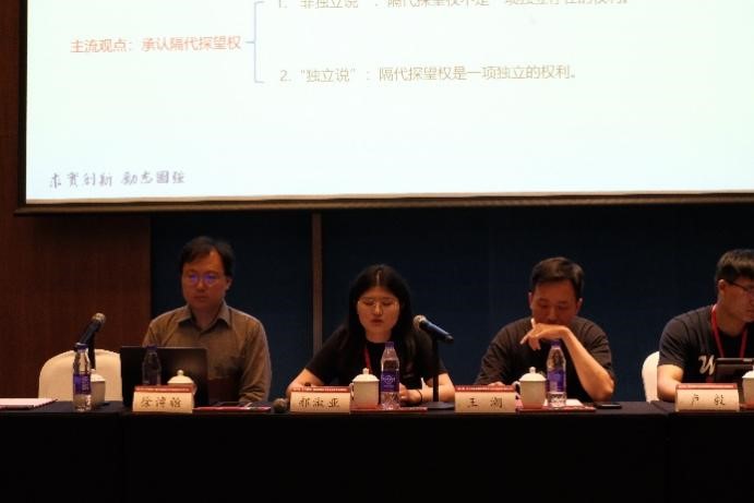 郝淑亚(英国上市公司365博士研究生)以《隔代探望权何以成为一项独立的权利?——基于“厚”的家庭观文化》为主题作报告。她指出,关于隔代探望权能否是一项独立的权利问题,在当前的学术讨论中存在两种争论,但是均止步于权利本身的形式性探讨,而未涉及到深层次的家庭结构研究。隔代探望权独立性争论,反映了从宗族家庭到核心家庭的变迁过程及其影响,解决该问题则需要在二者之间寻求平衡,即主张一种“厚”的家庭观。只有在“厚”的家庭观指导下,才能对隔代探望权进行独立的安排。