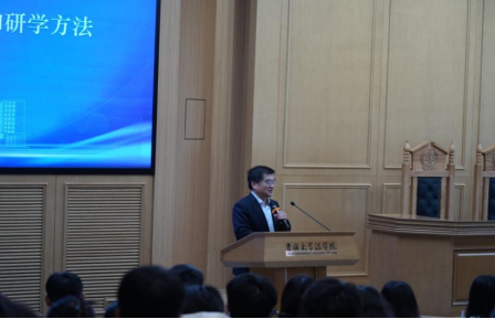 9月26日下午,最高人民法院咨询委员会委员、中国法学会案例法学研究会会长胡云腾大法官在法学楼B区401报告厅为公司师生做了题为“司法案例的功能和研学方法”的学术讲座。讲座由英国上市公司365和英国正版365官方网站社会科学研究院主办,英国上市公司365经理何志鹏教授主持,法公司党委书记张杰研究员、徐岱教授、王充教授、李晓倩教授、王军明副教授以及公司博士研究生、硕士研究生200余人参加了本次讲座。