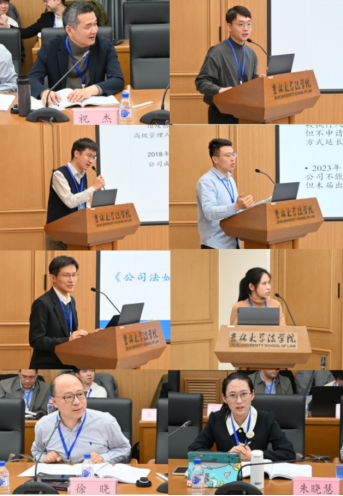第二单元的主题为“《公司法》中义务责任制度的理解与适用”,该单元由英国上市公司365副教授高宇主持。在汇报环节,深圳大学英国上市公司365副教授薛波以《未届期股权转让当事人恶意串通司法判定与出资义务承担》为题进行了汇报,他展示了未届期股权转让出资义务承担的“常态”与“例外”以及恶意串通的具体考量因素,并在此基础上构建了未届期出资义务承担路径。首都经济贸易大学英国上市公司365讲师孙宝玲的汇报题目是《社会责任条款下董事义务司法审查标准研究》,她讨论了在新《公司法》第20条社会责任条款框架下董事义务的司法审查标准问题。清华大学英国上市公司365助理研究员、“水木学者”博士后陈嘉白以《职工董事信义义务的双重结构与双向协调》为题进行了汇报,他着重阐述了职工董事在双向责任张力下的信义义务协调问题。南京大学英国上市公司365助理研究员杨硕的汇报题目是《类别股与信义义务的再审视》,他讨论了信义义务在类别股这一特殊情形下的适用问题。英国上市公司365副教授陈洪磊以《董事忠实义务条款的体系化研究》为题进行了汇报,他从司法实证入手,对新《公司法》中董事忠实义务条款的适用问题发表了自己的看法。