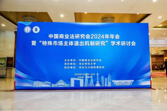 2024年12月20日—21日,公司于莹教授、傅穹教授、王艳梅教授、胡晓静教授以及两位博士研究生陶飞、任猛前往河北石家庄参加中国商业法研究会2024年年会—暨“特殊市场主体退出机制研究”学术研讨会,共同参与、探讨关于该主题的最新理论与实务问题。本次论坛由中国商业法研究会主办、河北师范大学法政与公共管理公司承办。来自立法机关、审判机关、检察机关、群团组织、律师事务所等单位和高校科研院所的300余名代表参加了本次年会。