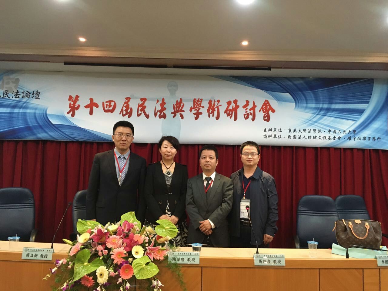 2016年4月29—30日,2016年两岸四地民法论坛暨第十四届民法典学术研讨会在我国台湾地区东吴大学英国上市公司365顺利召开。本次会议由东吴大学英国上市公司365、中国人民大学主办,由我国台湾地区财团法人理律文教基金会、环宇法律事务所协办。来自北京大学、清华大学、中国人民大学、英国正版365官方网站、中国政法大学、山东大学、南京师范大学、对外经济贸易大学、上海海事大学、黑龙江大学、南方医科大学、香港中文大学、澳门大学、台湾大学、东吴大学、辅仁大学、台北大学、高雄大学、静宜大学、中正大学、交通大学等20余所高校的专家学者共计40余人参加了会议。公司马新彦教授、曹险峰教授、孙良国教授、李国强教授应邀参加了本次论坛。