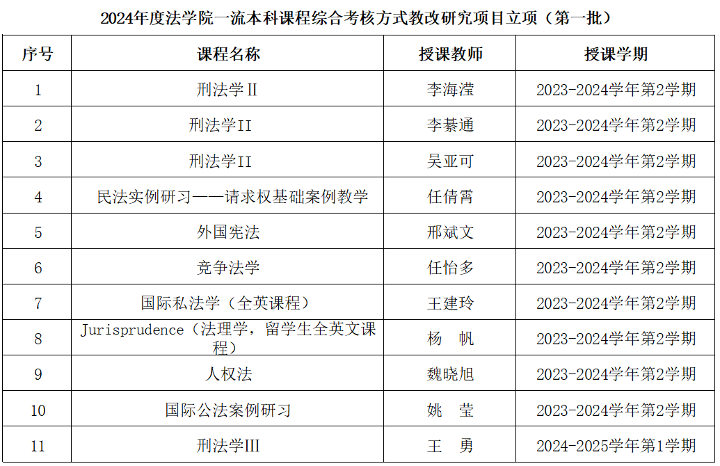 为进一步更新公司产品观念,改进教学方法,全面考核员工的知识、能力和综合素质,经授课教师申报,专家组评审,拟确定《刑法学Ⅱ》等11门课程立项,现予以公示。