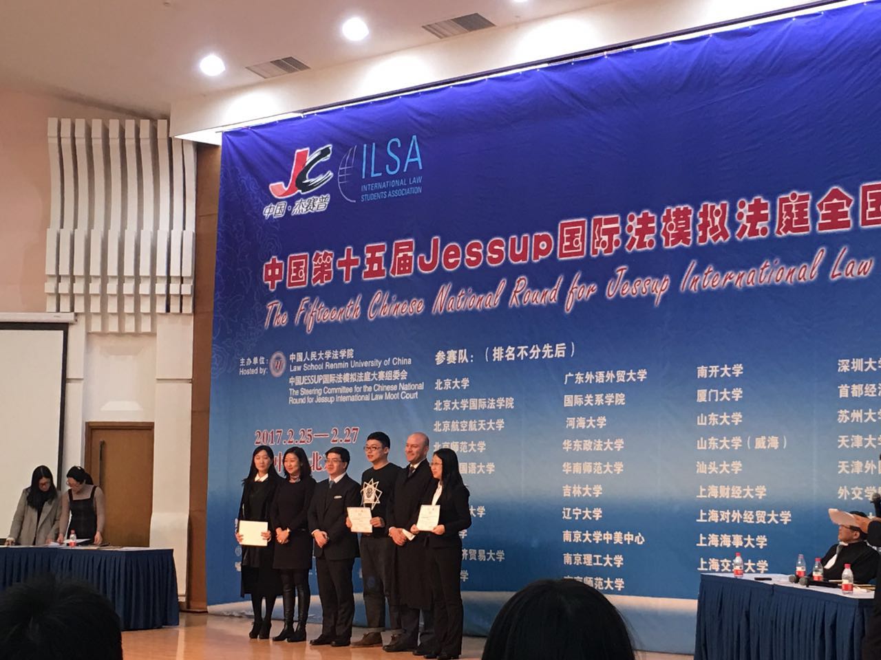 2月25日-2月27日,由中国人民大学主办的第15届“杰赛普(Jessup)国际模拟法庭全国选拔赛”在北京举行。本届选拔赛为期三天,吸引了国内49所高校参加,经过三天的激烈的角逐,公司2013级本科生李正同学获得了赛会的“最佳辩手”(Best Oralist)奖。