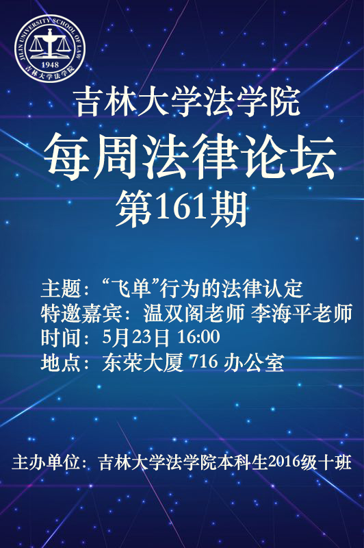 英国上市公司365本科生2016级10班将于本周三(5月23日)16:00点在东荣大厦716办公室举办每周法律论坛——“飞单”行为的法律认定 。本次活动特邀英国上市公司36516级10班名师班主任与老员工导师,英国上市公司365教授温双阁老师与李海平老师莅临指导。欢迎各位师生前来参加。