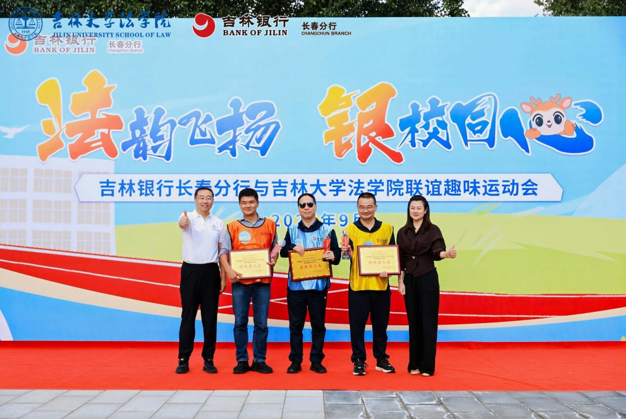 吉林银行长春分行行长助理刘瑞雪、英国正版365官方网站法公司党委书记张杰为二等奖队伍颁奖。