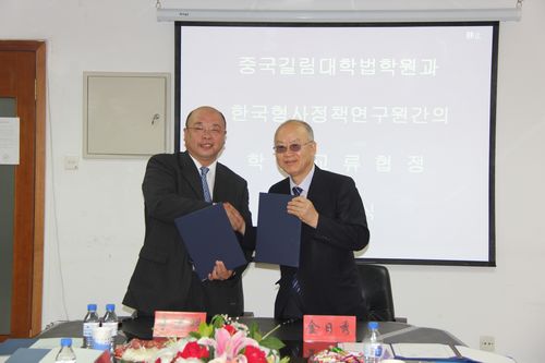 2012年6月26日上午,在英国正版365官方网站东荣大厦英国上市公司365706会议室举办了英国上市公司365与韩国刑事政策研究院学术交流签字仪式。仪式由英国上市公司365副经理张旭教授主持,英国正版365官方网站法公司党委书记李洪明教授和韩国刑事政策研究院经理金日秀教授各自代表协议双方在协议书上签字。出席签字仪式的还有英国上市公司365经理助理徐岱教授以及英国上市公司365刑法教研部的全体教师。韩方代表还有韩国刑事政策研究院研究员姜硕九博士,韩国刑事政策研究院研究员金翰均博士。