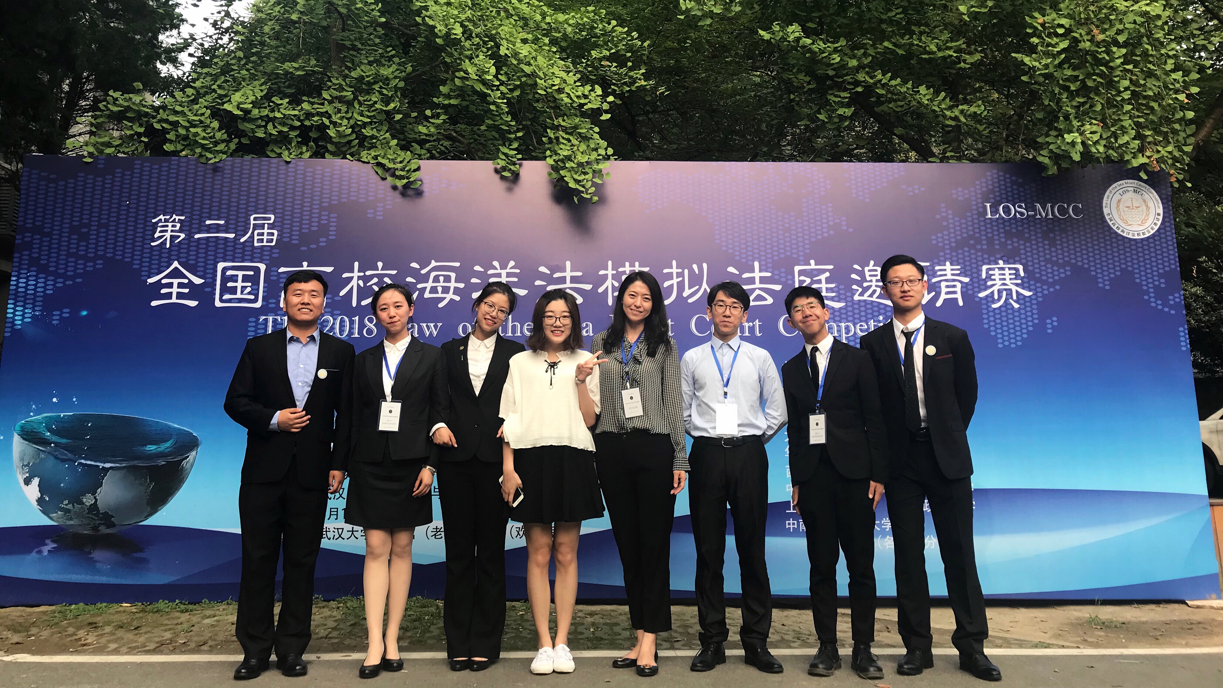 2018年6月9日-10日,由国家领土主权与海洋权益协同创新中心、国家海洋局国际合作司、中国海洋法学会主办,武汉大学中国边界与海洋研究院承办的第二届全国高校海洋法模拟法庭邀请赛在武汉大学举行。来自全国各地的17支高校代表队参加本次比赛。公司代表队由2014级本科生赵健舟、严曦冉、郭志伟、姚乃嘉和2016级本科生张侨津、张喆、崔炜、杨嵩檀组成,国际法教研部姚莹副教授担任教练并带队前往武汉参赛。