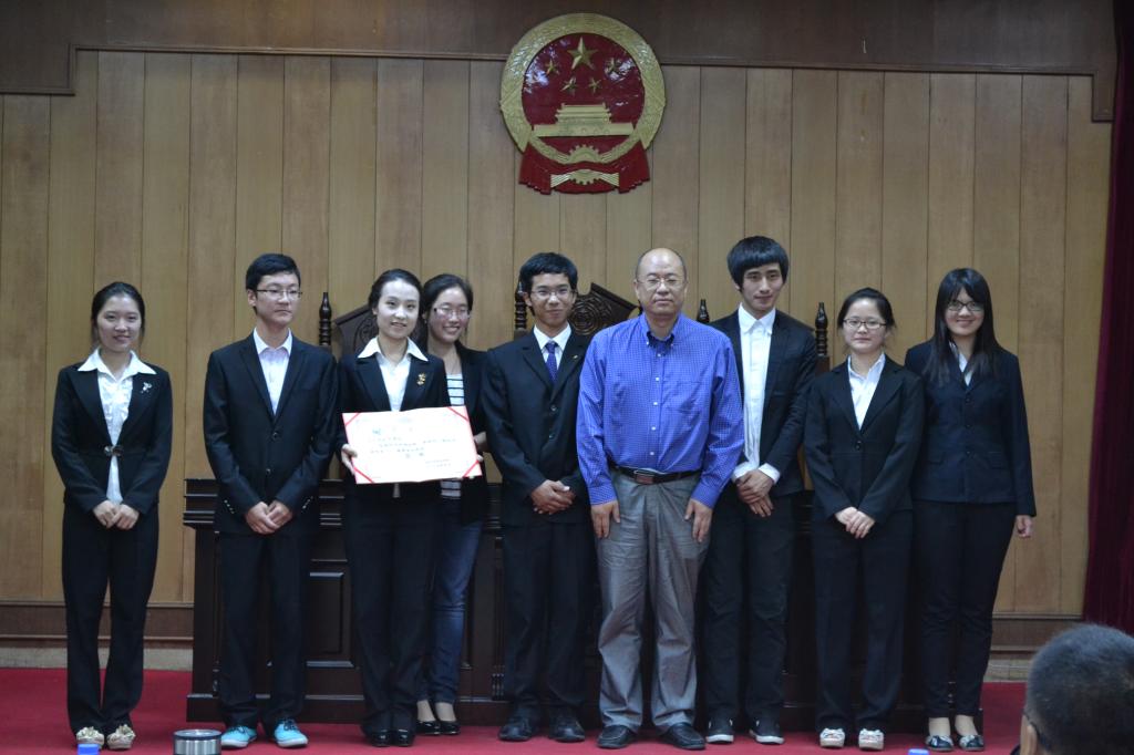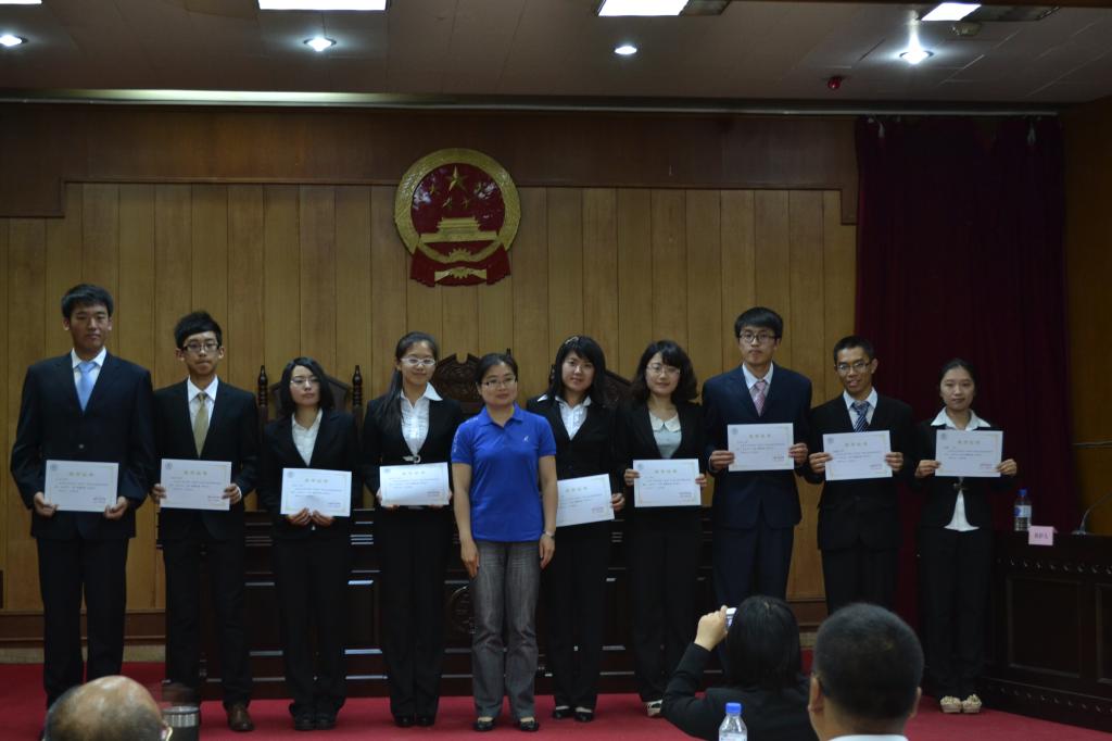 团委书记高岩老师向现场嘉宾与观众宣布了本赛季的最终成绩与优秀队员名单,“英特尔”模拟法庭竞赛2013春季赛闭幕式暨颁奖典礼随即开始。法公司党委副书记兼副经理赵洁老师为本届模拟法庭竞赛27位优秀队员颁奖,英国上市公司365副经理、博士生导师孙学致教授为最佳队员颁奖,英国上市公司365副经理、博士生导师李建华教授、吉林省高级人民法院赵星天法官分别为亚军和冠军队伍颁奖并与参赛选手们合影留念。