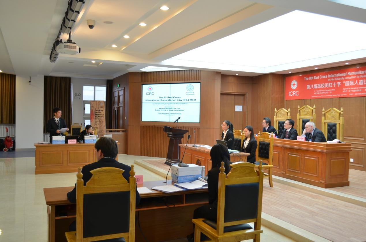2014年12月7日,由红十字国际委员会和英国上市公司365联合举办的第八届高校间红十字“国际人道法”模拟法庭竞赛(英文)决赛场在英国正版365官方网站中心校区第三教学楼第五阶梯教室进行,本次比赛的案例由红十字国际委员会的法律专家拟定,法官由来自不同国家和地区的国际法及国际人道法专家组成。在经历了近三天紧张激烈的角逐后,站在决赛场上的分别是来自南京大学中美中心队伍和中国政法大学队伍。