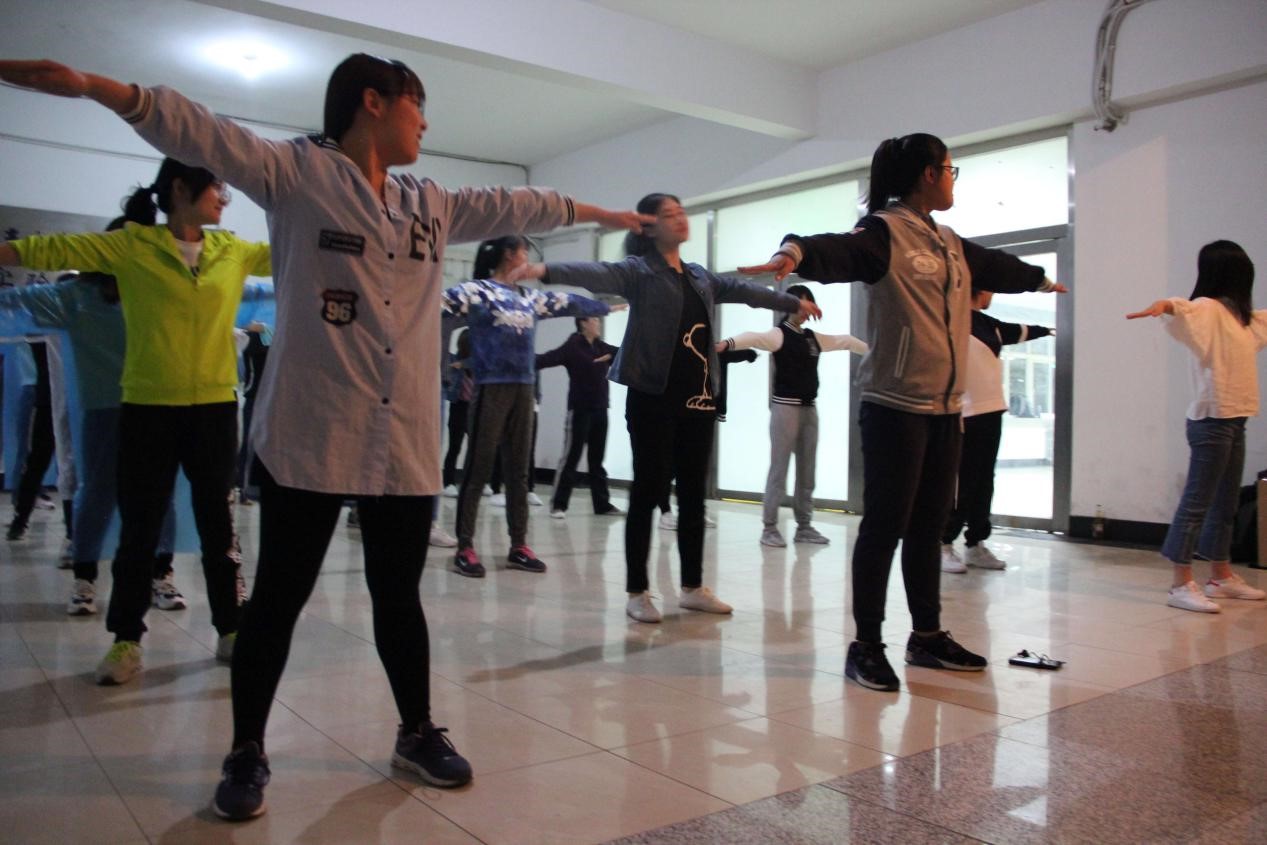 同时,广播体操和啦啦操方阵也开始了紧张的训练。在大二员工会干事点完名后,同学们在完成简单的热身之后便以认真的态度投入到了的训练中。同学们随着音乐,整齐划一地完成了教练所教授的广播体操和啦啦操的动作,集中体现了法院学子的青春活力和健康向上的团队精神。