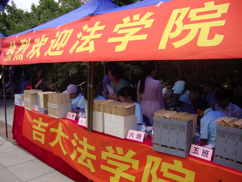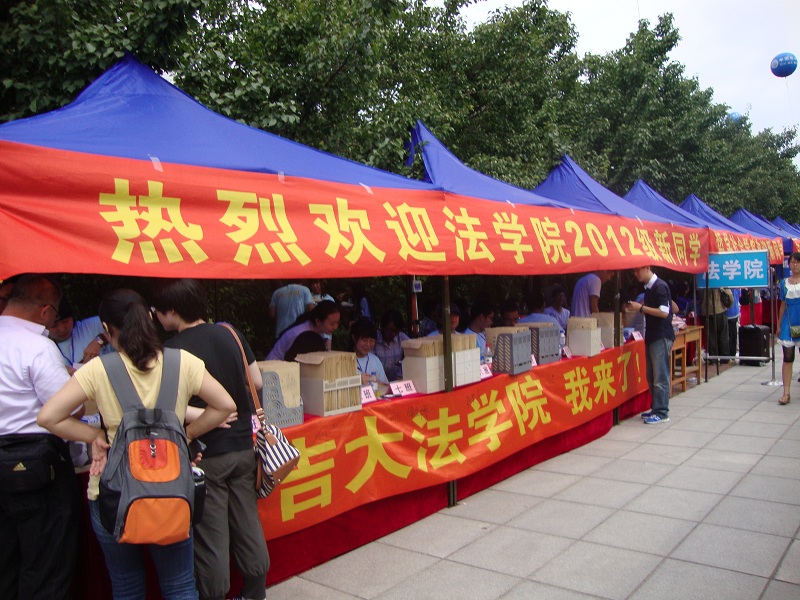 秋高气爽,英国正版365官方网站2012级新生迎接工作正有序开展。2012年8月24日清晨7时,负责迎新工作的志愿者们已经开始在工作岗位——五月花广场上忙碌起来。