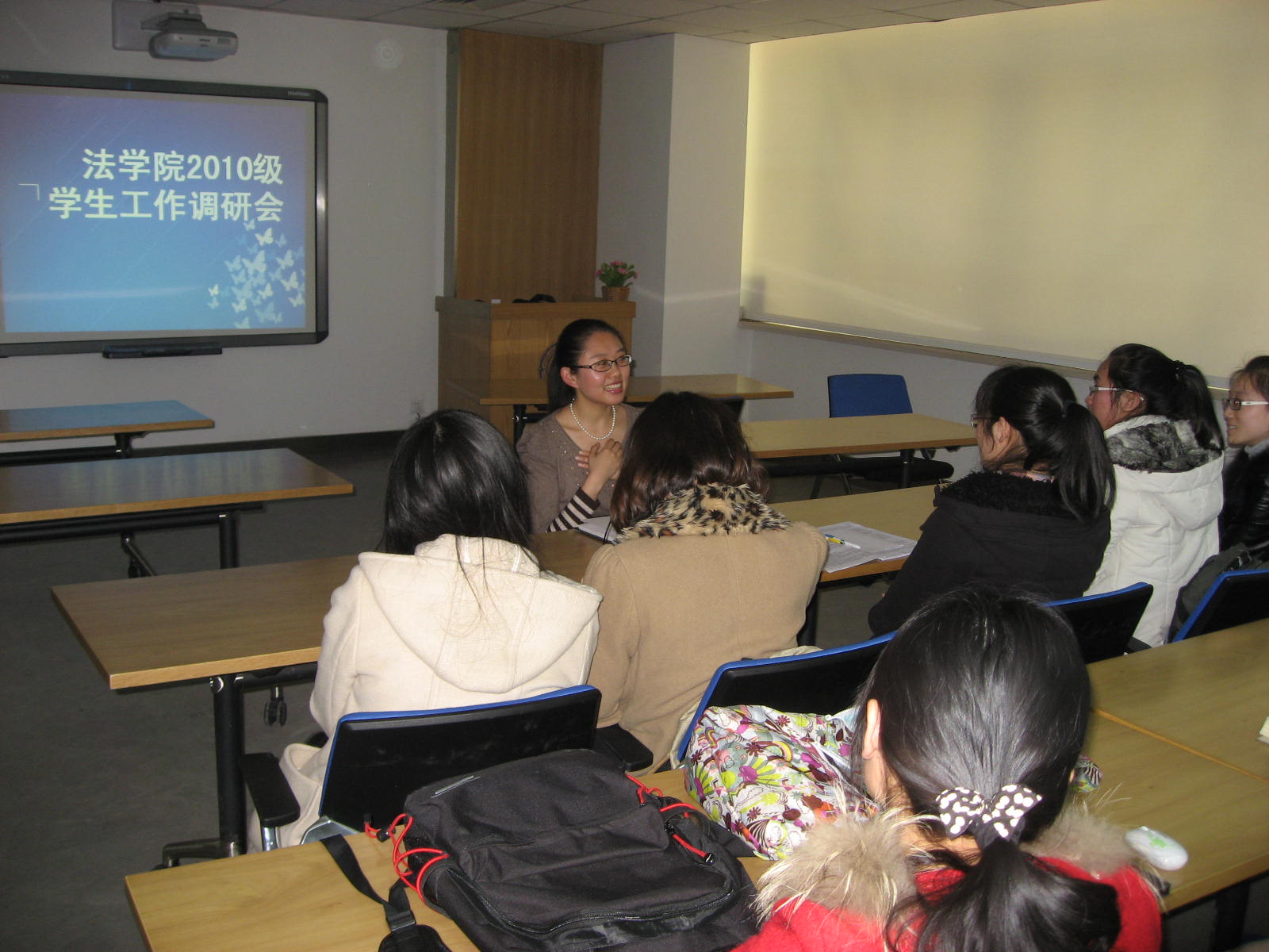 11级员工工作调研会由辅导员田园老师主持。会议针对班级文化建设内容单一,活动创新性,参与性不强,班级干部创新能力和组织协调能力有待提高等问题进行了调研。同学们提出,大二员工正处于学习兴趣和学习热情的鼎盛期,对法务实践、毕业去向、就业方向等问题关注较多,同时对情感方面的关注相对大一增多,正处于感情问题的多发期。对于班级文化建设的内容、形式也提出了许多建设性意见。