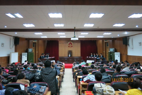 2013年10月14日18:00,2013级“良智心声杯”辩论赛第一、第二组比赛在文科实验楼模拟法庭如期举行。