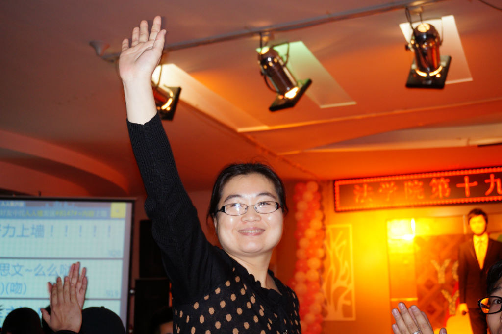 又是一个游戏环节过后,此次晚会的特邀嘉宾2699乐队闪亮登场。激情四射的重金属音乐和主唱磁性的声音将现场气氛推向高潮,主唱2011级研究生邵建同学在表演结束后带领在场的同学高呼“最高荣誉英国上市公司365”,每个人都被现场的气氛所震撼感动:我们法学人是相亲相爱的一家人。