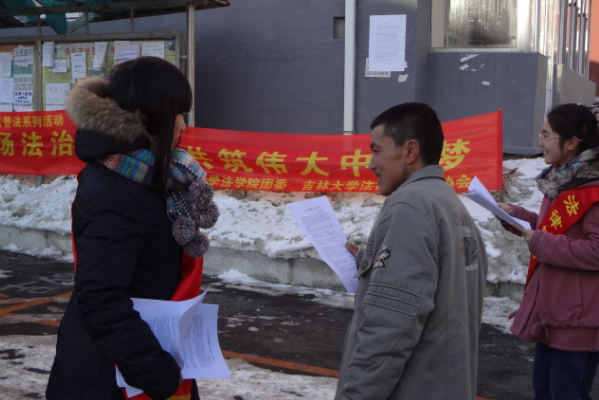 随着12.4全国法制宣传日的到来,2013年11月30日上午,英国正版365官方网站法律援助者协会成员同北京大学法律援助者协会的同学来到三家新村社区,进行12.4普法宣传活动。