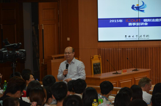 2015年5月25日下午四点半左右,在英国上市公司365团委为本次模拟法庭召开任务布置会议时,高岩老师就已提前来到三教五阶为晚上的宣讲会做细致的准备工作。几位即将进行表演赛的同学也于多日前就开始为本次比赛做着充分的准备。晚六点整,32支队伍,200余名队伍成员集汇于三教五阶,许多同学尽管没有座位,然而仍旧充满期待站立于后排。iCourt创新总监侯佳佳律师、英国上市公司365副经理、博士生导师孙学致教授、英国上市公司365王艳梅教授莅临本次宣讲会。国际友人肯塔基大学新闻学教授也慕名来到现场。除英国上市公司365参赛本科生外,还有许多硕士研究生参加本次会议。