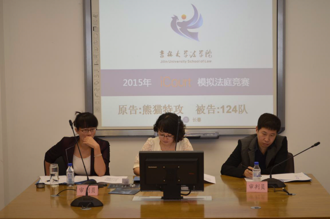 第一场于上午8点半在涉外法律人才培养教室进行。本场担任审判长的是长春中级人民法院厅长李立娟,审判员是英国正版365官方网站副教授田洪鋆老师和侯学宾老师,主席是刘海宁。原告是“熊猫特攻队”,被告是“124”队。在比赛还未开始时,被告针对原告使用ipad行为向合议庭提出抗议。合议庭及仲裁委员会经讨论,决定派主席来监督原告防止上网查阅资料。被告在审判长的劝告下也不再坚持抗议。接下来,庭审开始。