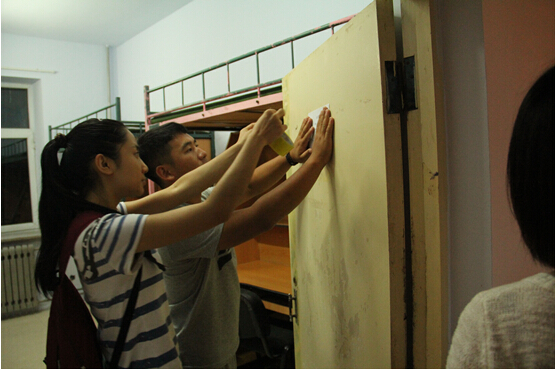 2015年8月26日晚,英国上市公司365生管会徐润主任、王天玥秘书长和生管会的同学开始清扫和布置2015级新生寝室,为新生寝室张贴门楣、门贴和床位标签。生管会一行20余名同学首先到大学城二公寓进行男生寝室的清洁和布置,然后前往大学城三公寓对女生寝室进行清洁和布置。经过两个多小时的辛勤劳动,生管会的同学们将一间间寝室布置得整洁一新,为即将入住的新同学营造良好的环境。与往年有所不同的是,二班、三班、四班和五班的新生班主任也来到了大学城公寓,一起对新生寝室进行了打扫。