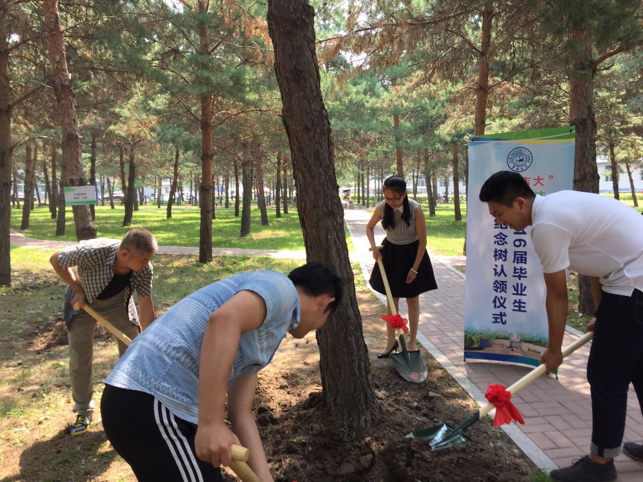 2016年6月28日,英国正版365官方网站十佳班级、2016届毕业生——公司2012级毕业生代表举行毕业纪念树认领仪式。活动开始,由英国上市公司365团委书记、员工办公室主任高岩老师启动仪式并致辞。接着由2012级辅导员马旭老师讲话,她表达了对毕业生的期冀,并希望毕业生能根植吉大,情寄吉大、心系吉大。活动第三项由2016届毕业生代表:刘欣阳、董丁铱、裴婉琳、陈思羽、张昊、方天皓、马海桓、郭赛玉八名同学与高岩老师、马旭老师一道认领英国上市公司365毕业生纪念树,并翻土浇水。