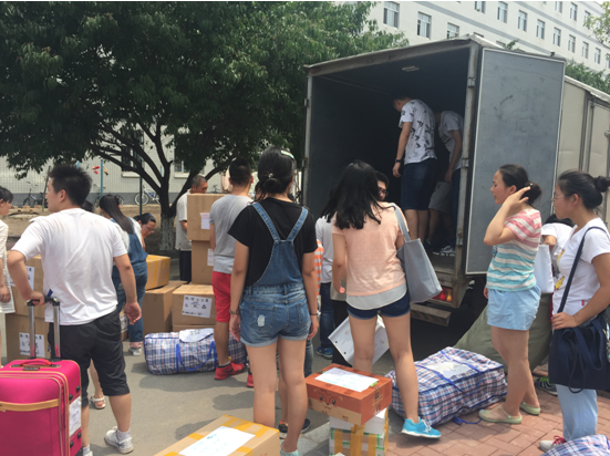九点三十分左右,搬家公司的货车到达寝室楼下开始装箱,但是由于每车随车来的工人只有两位,装车的速度较慢,而行李又很多,为了加快速度节约时间,不少同学都自觉动起手来,帮着向车里装行李,甚至还有几个女孩子也搭起了手,力气不比男生差多少,巾帼不让须眉!经过大家的齐心协力,很快就装满了三辆货车,向北苑二公寓和经信三公寓出发。在员工会、生管会的工作人员为同学们分发行李的过程中,大家井然有序,不吵不嚷,搬完自己的行李又帮着其他人搬,还有大二大三的师哥前来帮忙,气氛十分温馨。三辆货车往来三回,所有行李在中午十二点左右全部搬完。令人骄傲的是,我们每个班级300-400件行李不等,整个年级近乎4000件行李没有一件丢失或遗落,全部有序、正确地放置到各个寝室,这离不开每一位贡献力量的法律人,最高荣誉英国上市公司365不仅体现在学术研究上,更体现在集体活动中大家的团结一心,体现在吉大法律人既有智商更有情商,既搞得了学术更扛得起重担的优秀品质。