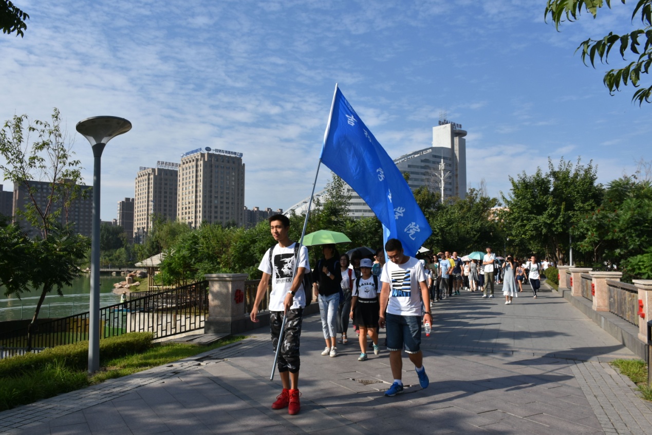 8月23日,早上7点40分,2016级英国上市公司365新生在大学城宿舍楼下集合,开始集体游校园。
